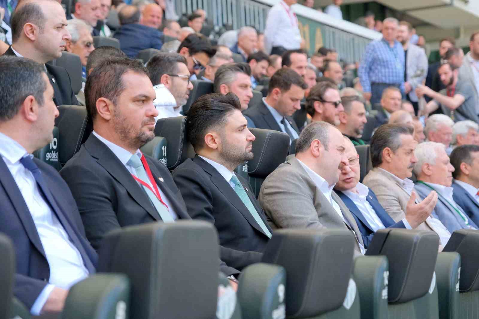 Bursaspor Basketbol Kulübü Başkanı Sezer Sezgin, kongrede yaptığı konuşmada, “Bursaspor Basketbol takımı eğer başarı sağlıyorsa, bu Bursaspor sayesinde. Biz de basketbol takımı olarak futbol takımı Süper Lig’e çıkana kadar tüm kurumsal kombine gelirimizi Bursaspor’a bırakma kararı aldık. Gerekirse bir maç eksik alırız, bir oyuncu eksik alırız ama yaşasın Bursaspor” dedi.