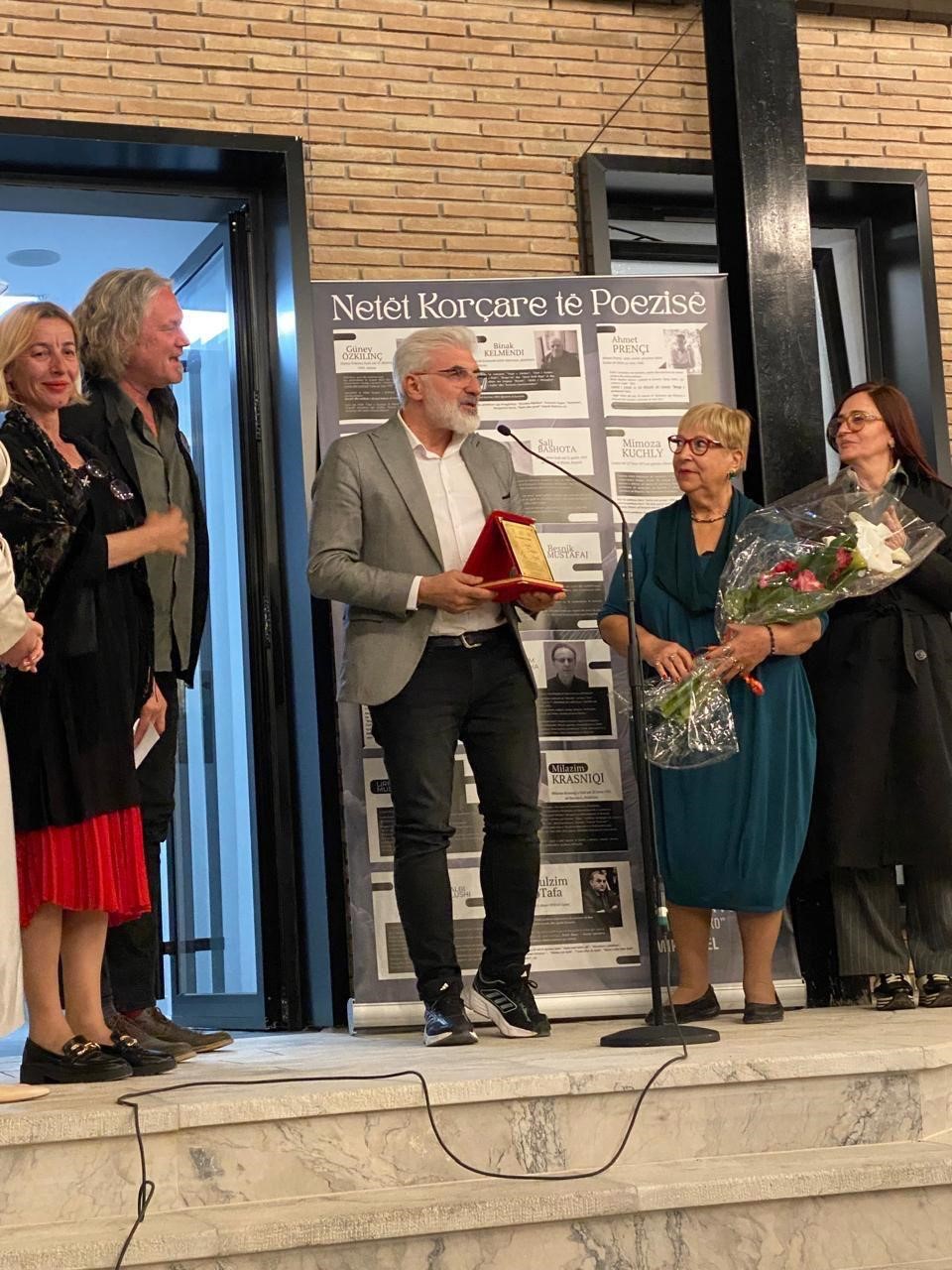 ULUSLARARASI YAZARLAR FESTİVALİ KORÇA ŞİİR GECELERİ ETKİNLİKLERİ’NDE BURSA BÜYÜKŞEHİR BELEDİYESİ BASIN YAYIN VE HALKLA İLİŞKİLER DAİRE BAŞKANILIĞI GÖREVİNİ YÜRÜTEN ŞAİR YAZAR GÜNEY ÖZKILINÇ’A “DRİTERO AGOLLİ ÖDÜLÜ” VERİLDİ.