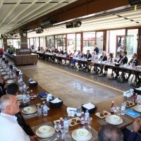 Bursa Büyükşehir Belediye Başkanı Mustafa Bozbey, önümüzdeki 5 yılda kente değer katacak olan çalışmalara birlikte imza atacağı yönetim kadrosuyla buluştu. Dobruca Sosyal Tesisleri’ndeki toplantıya, Büyükşehir Belediye Başkanı Mustafa Bozbey’in yanı sıra Genel Sekreter Doç. Dr. Ergül Halisçelik, genel sekreter yardımcıları, daire başkanları, BUSKİ yöneticileri, bağlı iştiraklerin yönetim kurulu başkanları ve genel müdürleri ile başkan danışmanları katıldı. Belediyenin üst yöneticilerinin birbirini tanıma fırsatı bulduğu toplantıda, Büyükşehir Belediyesi’nin 2024-2029 stratejik plan çalışmaları da ele alındı.