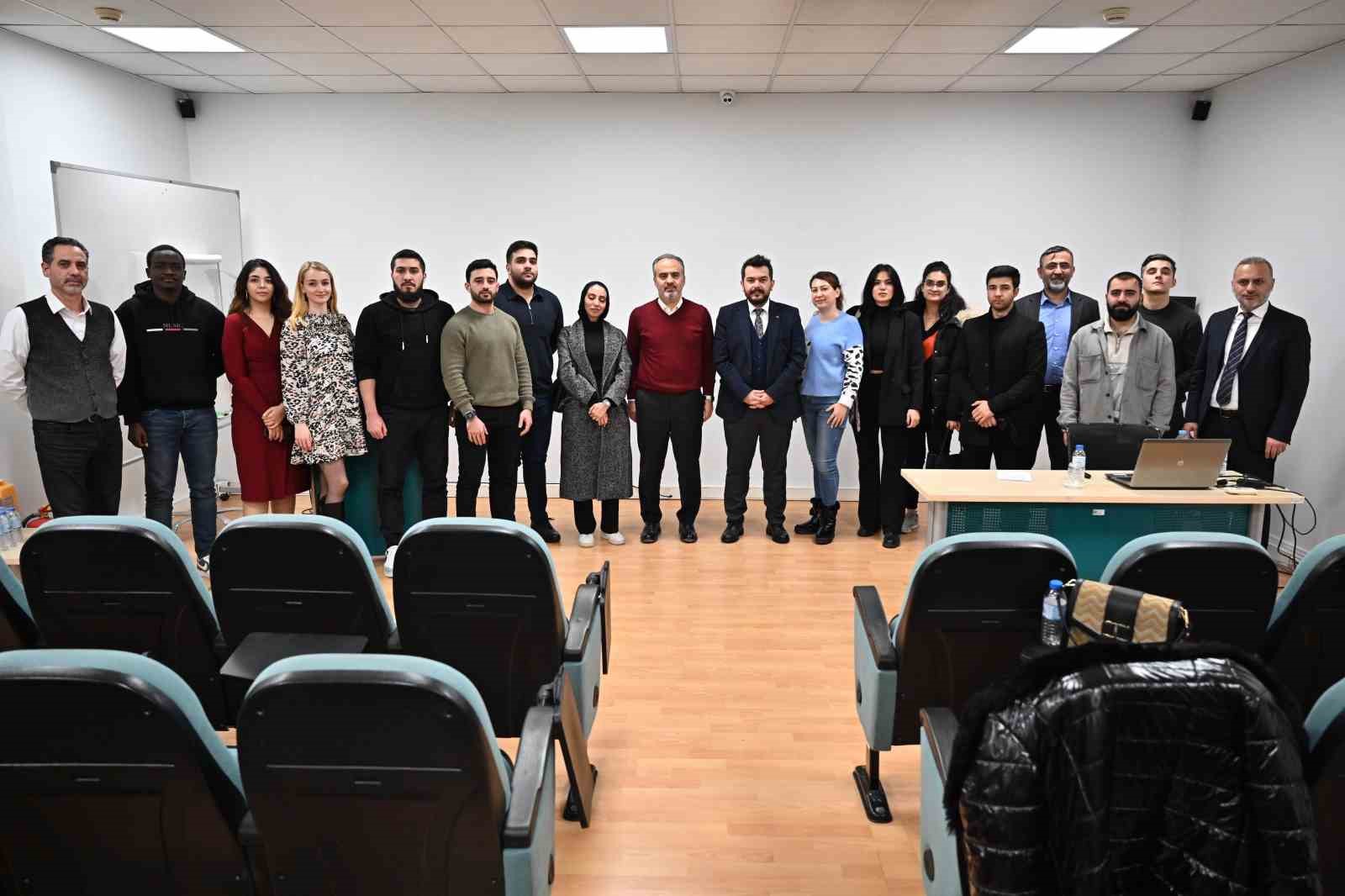 Uludağ Üniversitesi’nde öğrenim gören yüksek lisans öğrencileri, Ulaştırma Ekonomisi dersini BURULAŞ binasında gerçekleştirdi. Büyükşehir Belediye Başkanı Alinur Aktaş, kent içi ulaşım ve ulaştırma ekonomisi ilgili gözlem ve deneyimlerini gençlerle paylaştı.