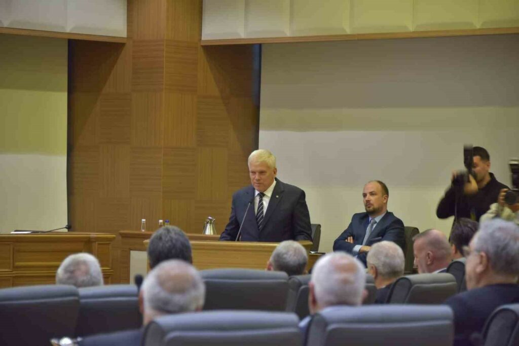 8’inci Büyükşehir Belediye Başkanı ile çalıştığını belirten BUSKİ Genel Müdürü Güngör Gülenç, “İlk başkanımızı rahmetli Ekrem Barışık döneminde BUSKİ’de çalışmaya başladım. Bu çalışma süresi içerisinde bir kısmınızla yeni tanıştık. Ama en uzun Mustafa Bozbey Başkanımız ile tanışıyoruz. Biz okul döneminden itibaren birbirimizi tanıyan ve sürekli görüştüğümüz bir büyüğümüz. BUSKİ’de işe başladığımda arıtma tesisi olmayan, tüm kanalizasyonları dereye akan, proje üretmek istediğimizde yapabileceğimiz haritaların olmadığı günlerde işe başladık. Bunların hiçbiri mazeret değildi. O günün yöneticileri belli plan dahilinde ilk yaptığımız işten hava fotoğrafı ile sayısal harita ürettik. Sayısal harita ürettikten sonra zaten işimizin önü açıldı. BUSKİ için neler yapabileceğimizi sırayla planladık. Su kayıp kaçaklarında Türkiye’nin başarılı ili olarak 31 Ocak 2023 tarihinde ödülümüzü aldık. Tüm atık sularımızı atık tesislerimizle buluşturduk. Dere ıslahları yaparak Nilüfer Deresi’ni ıslah ederek, 450 dönüm olan Mihraplı Parkı’nı kazandırdık. 3 ilçemizde çalışmalar devam ederken 2004 yılında bu defa 7 ilçeye çıktık. Kestel ve Gürsu ilçelerindeki atık suları, yeşil çevre atık su arıtma tesisi ile kavuşturduk. Gemlik’te eski adliyenin önünde sürekli sorunlar vardı. Bursa’da ilk yağmur suyu terfi istasyonunu o bölgede yaptık. Gemlik ilçemizde o günden sonra da yağmur suyuyla ilgili bir problem yaşanmadı. Küçükkumla ve Kurşunlu’da arıtma tesisi yaparak Gemlik’i daha yaşanılabilir hale getirdik. Müsilaj olduğu zaman, Marmara Denizi’ne kıyısı olan şehirlerde dolaşıldığında biz Bursa olarak ödül aldık. Diğer iller ceza aldı” dedib