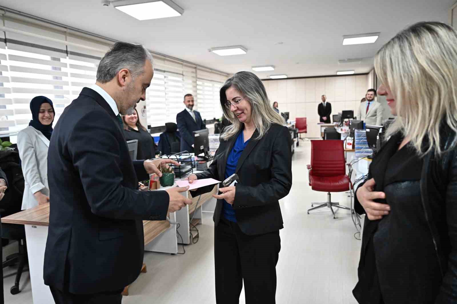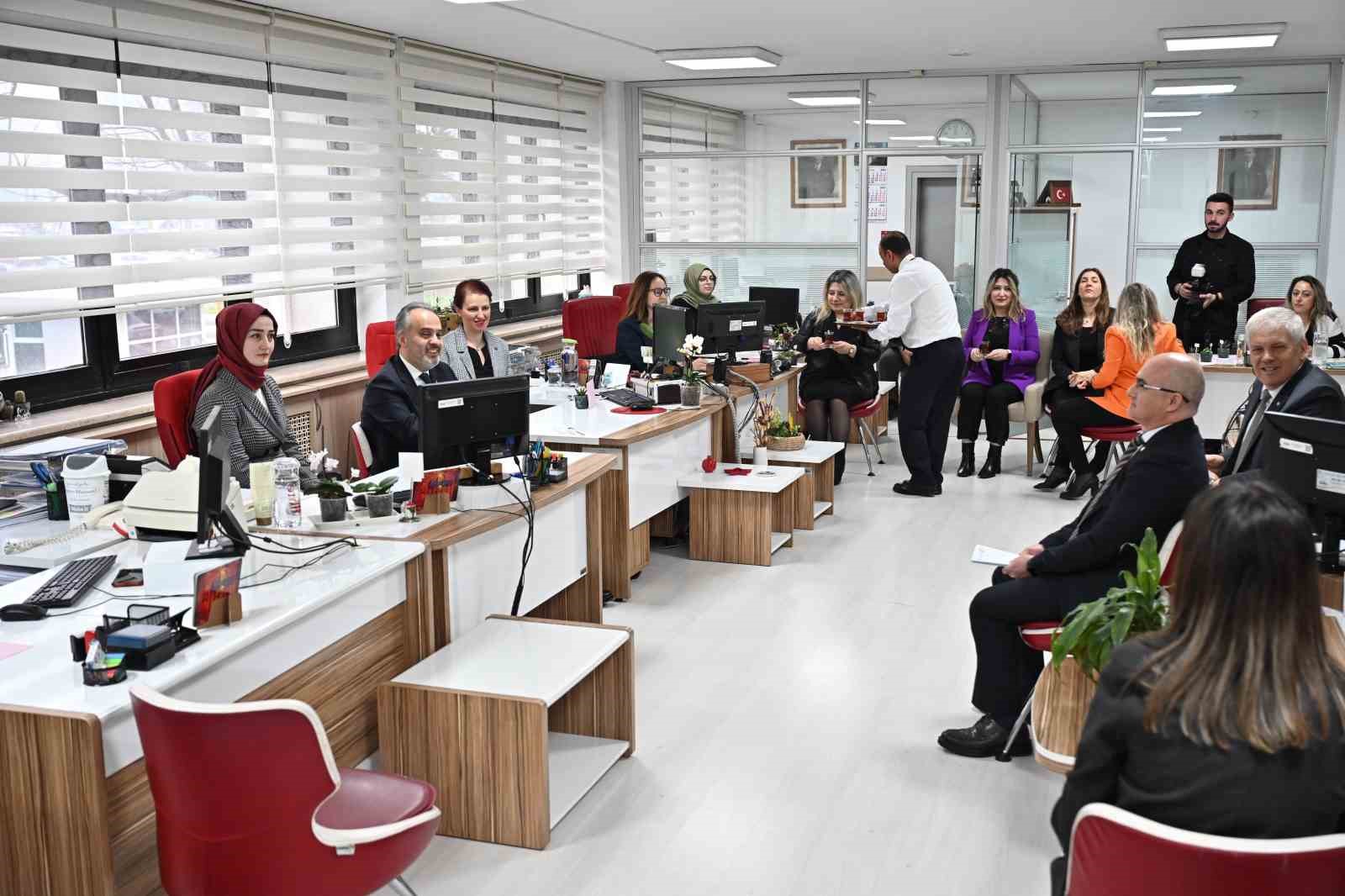 Bursa Büyükşehir Belediye Başkanı Alinur Aktaş, 8 Mart Dünya Kadınlar Günü dolayısıyla BUSKİ’de çalışan kadın personelleri ziyaret ederek çiçek ve hediye takdim etti.