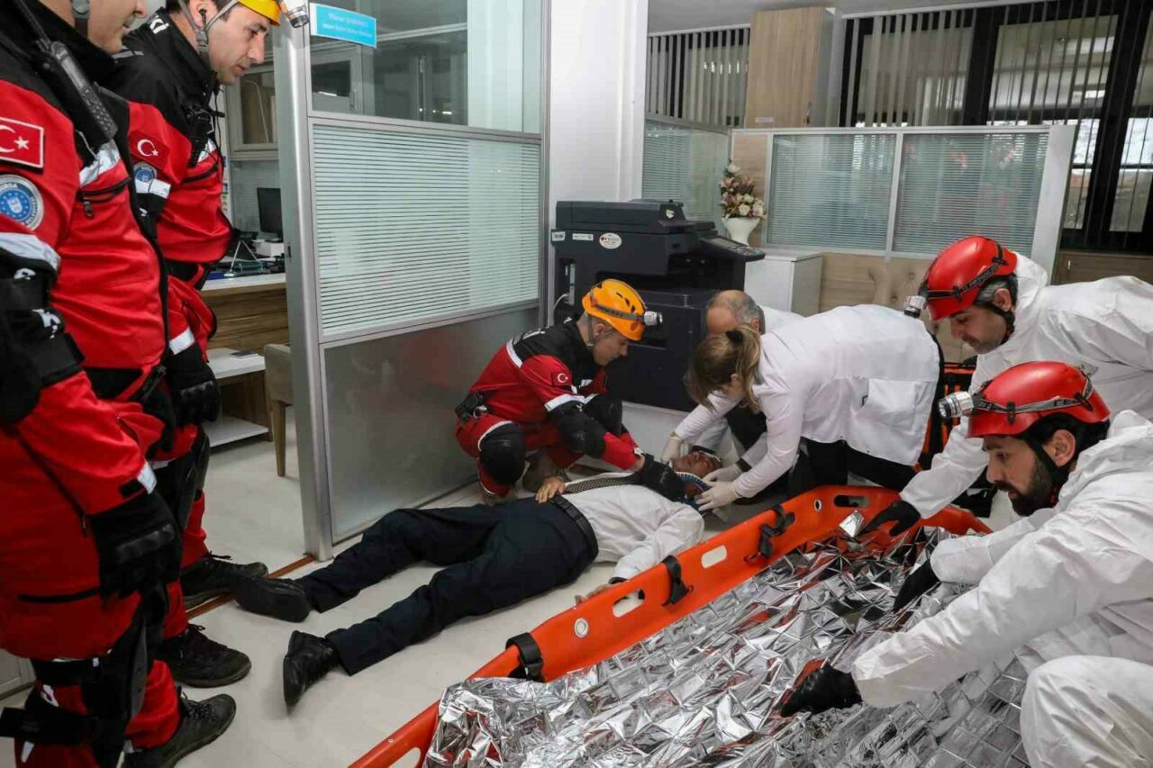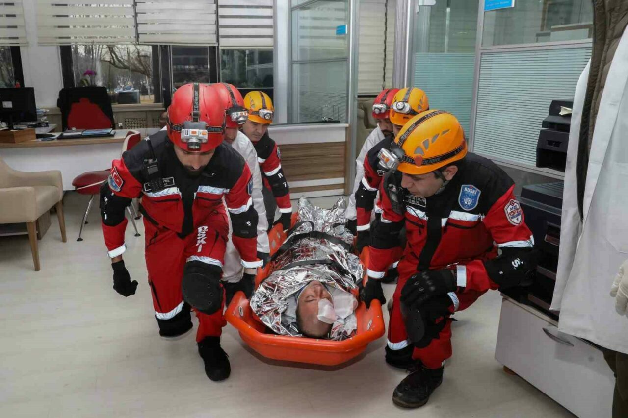 BUSKİ Genel Müdürlüğü Binası’nda gerçekleştirilen tatbikat ile deprem ve yangın senaryolarında aşamalı olarak yapılması gerekenler aktarıldı. Senaryo gereği bina hızlı ve güvenli bir şekilde boşaltılırken BUSKİ Arama Kurtarma Ekibi de uzman kadrosuyla olay yerinde görev aldı. Yangın durumundaki muhtemel gaz sızıntıları ekipler tarafından titizlikle kontrol edildi. Çalışanların yaralandığı senaryolardaki tahliye işlemleri de gerçeğe uygun şekilde canlandırıldı.