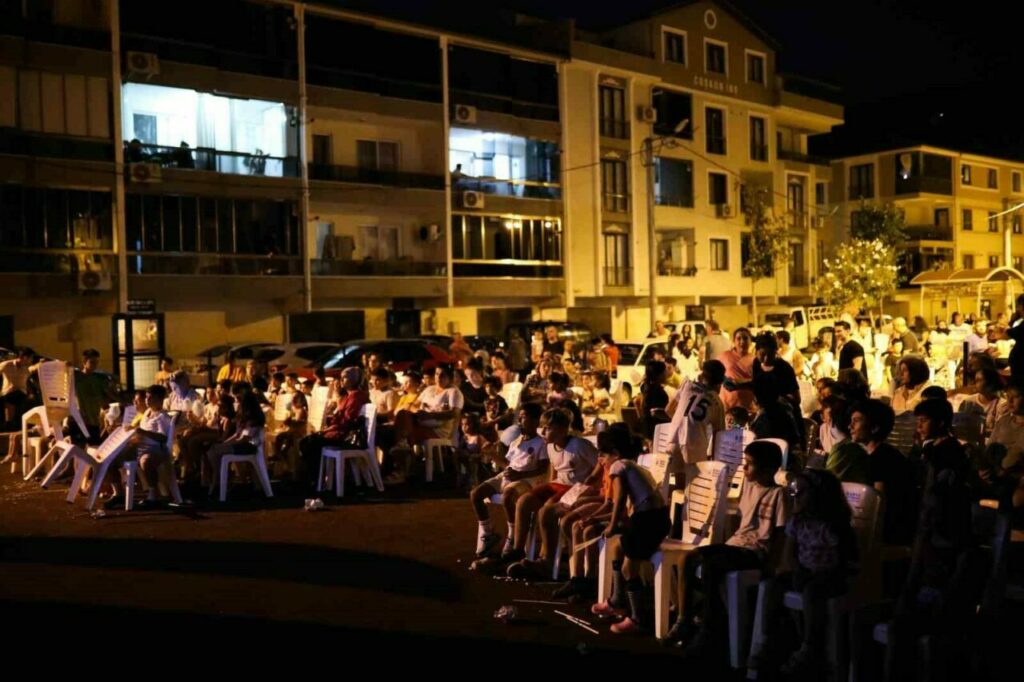 Gemlik Belediyesi, yaz etkinlikleri kapsamında Eşref Dinçer Mahallesi’nde çocuklara yönelik açık hava sinema etkinliği düzenledi. Mahalle sakinlerinin yoğun ilgi gösterdiği programa Eşref Dinçer Mahallesi Muhtarı Yusuf Güngör Al da katıldı.