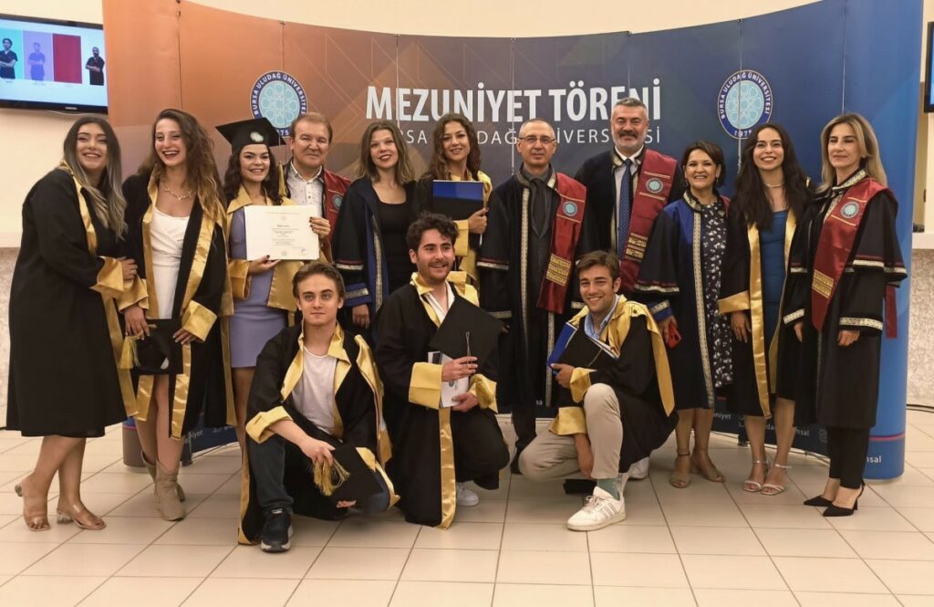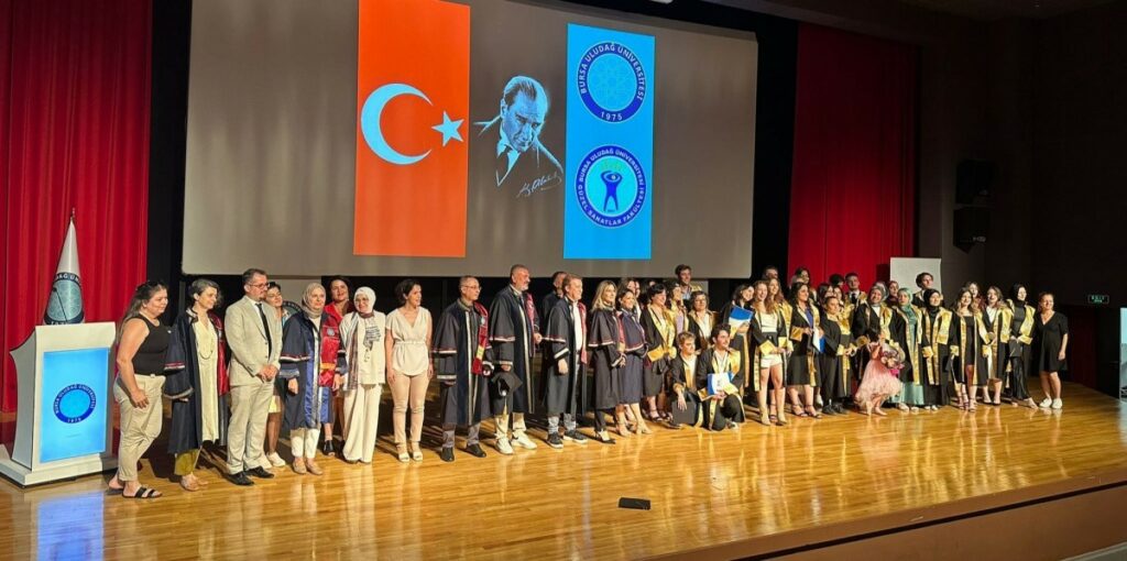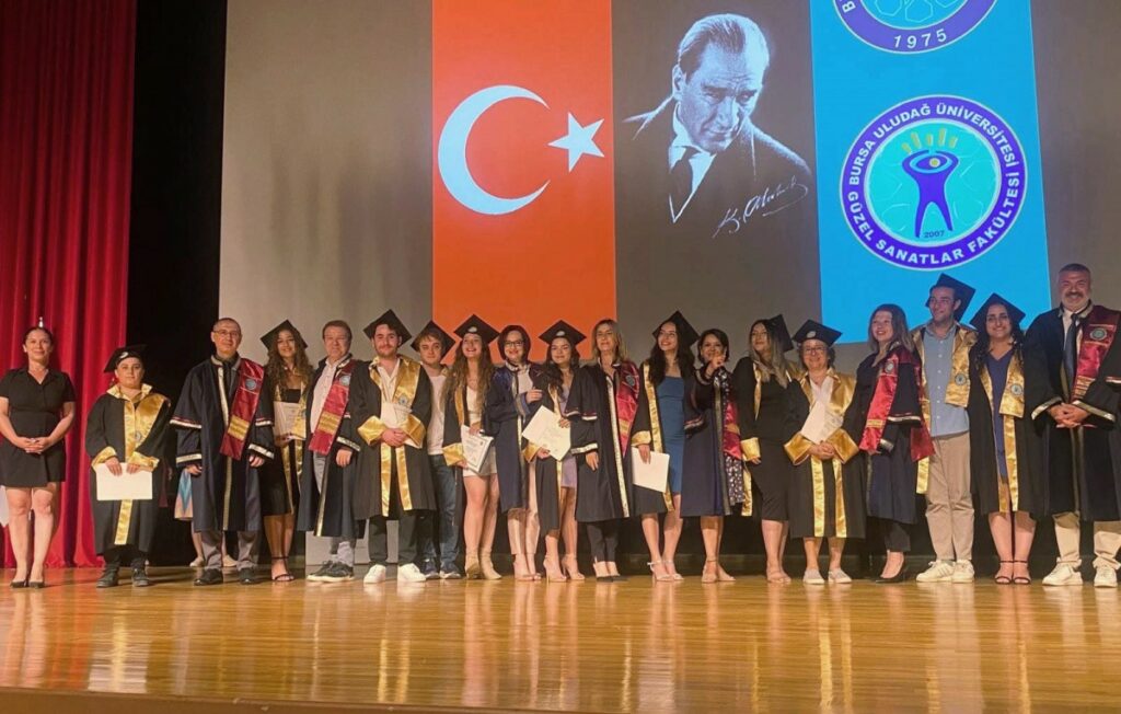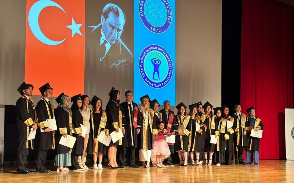 Bursa Uludağ Üniversitesi (BUÜ) 2023-2024 akademik yılı mezuniyet törenleri çerçevesinde Güzel Sanatlar Fakültesi, lisans öğrenimini başarıyla tamamlayarak mezun olmayı başaran öğrencileri için coşkulu bir mezuniyet töreni düzenledi. Prof. Dr. Mete Cengiz Kültür Merkezi’nde gerçekleştirilen programa BUÜ Rektör Yardımcısı Prof. Dr. Zekeriyya Arı, Güzel Sanatlar Fakültesi Dekanı Prof. Ali Sait Liman, akademisyenler, öğrenciler ve aileleri katıldı.