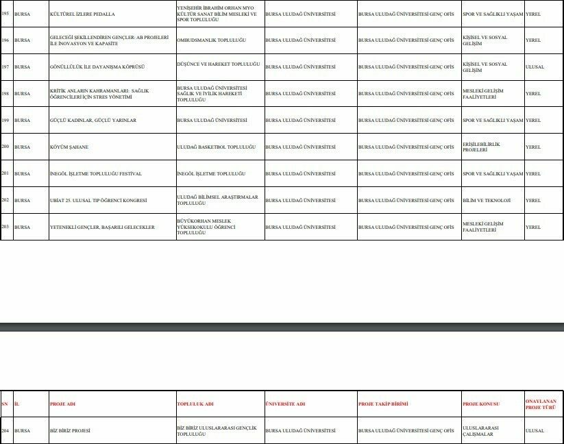 Genç ofislerin üniversite öğrenci topluluklarıyla etkileşimlerini artırmayı ve gençlerin gelişimine katkı sağlamayı hedefleyen programda BUÜ öğrenci topluluklarının gönderdiği 10 proje destek almaya hak kazandı. Yaklaşık 180 öğrenci topluluğuna sahip olan BUÜ’de faaliyet gösteren Yenişehir İbrahim Orhan MYO Kültür Sanat Bilim Mesleki ve Spor Topluluğu, Ombudsmanlık Topluluğu, Düşünce ve Hareket Topluluğu, Tekvando WingChun Topluluğu, Uludağ Basketbol Topluluğu, İnegöl İşletme Topluluğu, Uludağ Bilimsel Araştırmalar Topluluğu, Büyükorhan MYO Öğrenci Topluluğu ve Biz Biriz Uluslararası Gençlik Topluluğu hazırladıkları projelere destek almayı başardı.