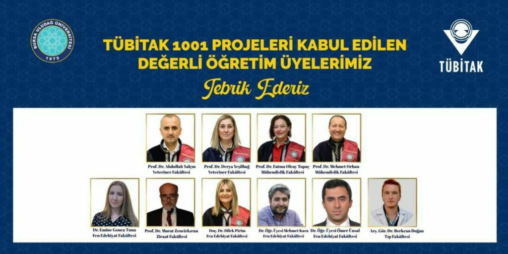 Araştırma Destek Programları Başkanlığı’nın (ARDEB) açıkladığı listede, Prof. Dr. Abdullah Yalçın, Prof. Dr. Derya Yeşilbağ, Prof. Dr. Fatma Olcay Topaç, Prof. Dr. Mehmet Orhan, Prof. Dr. Murat Zencirkıran, Doç. Dr. Dilek Pirim, Dr. Öğr. Ü. Mehmet Kara, Dr. Öğr. Ü. Ömer Uysal, Arş. Gör. Berkcan Doğan ve Doktora Sonrası Araştırmacı Emine Gonca Tuna yer aldı. Toplam 10 proje kabulü ile BUÜ, Türkiye genelinde en fazla proje desteği alan 9. yükseköğretim kurumu olmayı başardı.