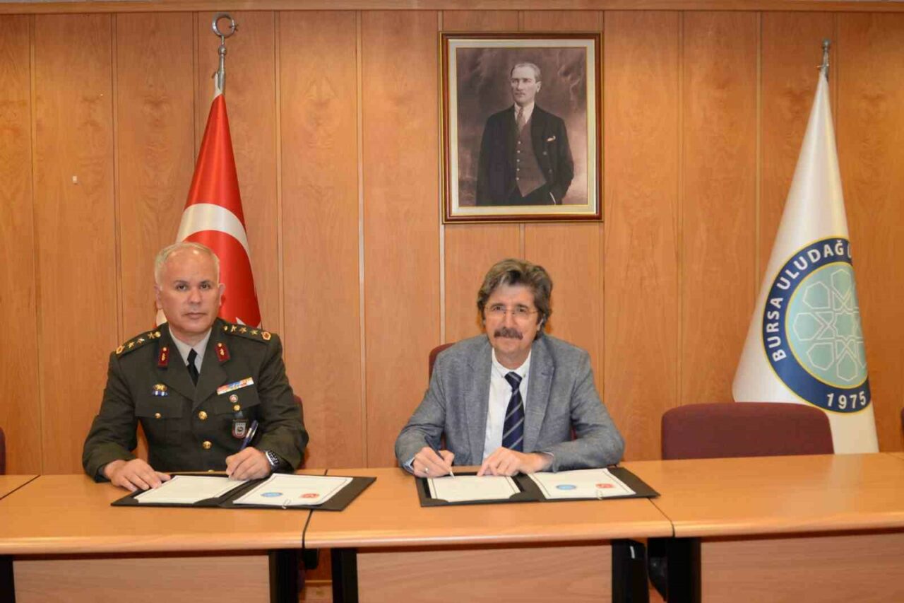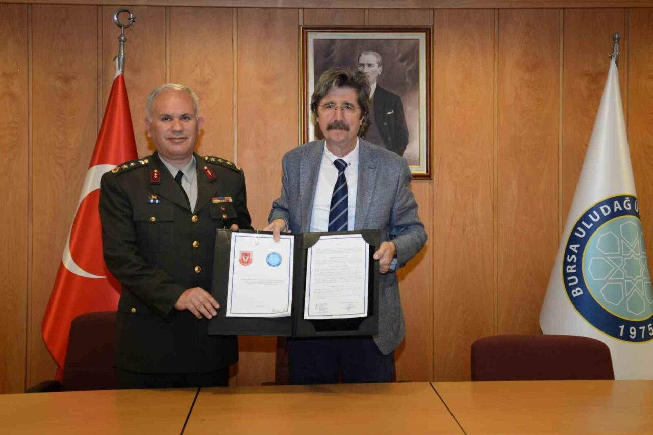 Törende konuşan Rektör Prof. Dr. Ferudun Yılmaz, üniversite olarak gelecek dönem 50. kuruluş yılını kutlayacakları bilgisi vererek; “Sadece Bursa’nın değil, Türkiye’nin yükseköğretimde marka olan bir üniversitesiyiz. Kendisine has bir bilgi altyapısı, güçlü akademik kadrosu ve nitelikli çalışmaları olan üniversitemiz, toplumun her kesimi ile yakın işbirliği içerisinde olmaya özen gösteriyor. Kamu veya özel sektör ayrımı gözetmeksizin sorumluluk almaya devam ediyoruz. Askeri Veteriner Okulumuz ile daha önce bir işbirliği yapılmamış. Bugün yeni bir sayfa açıyoruz. Son derece değerli bir işbirliğinin ilk adımlarını atıyoruz. Bu protokolün yeni işbirliklerine de vesile olacağına gönülden inanıyoruz. Emeği geçen ve katkı koyan herkese teşekkür ediyoruz” dedi.