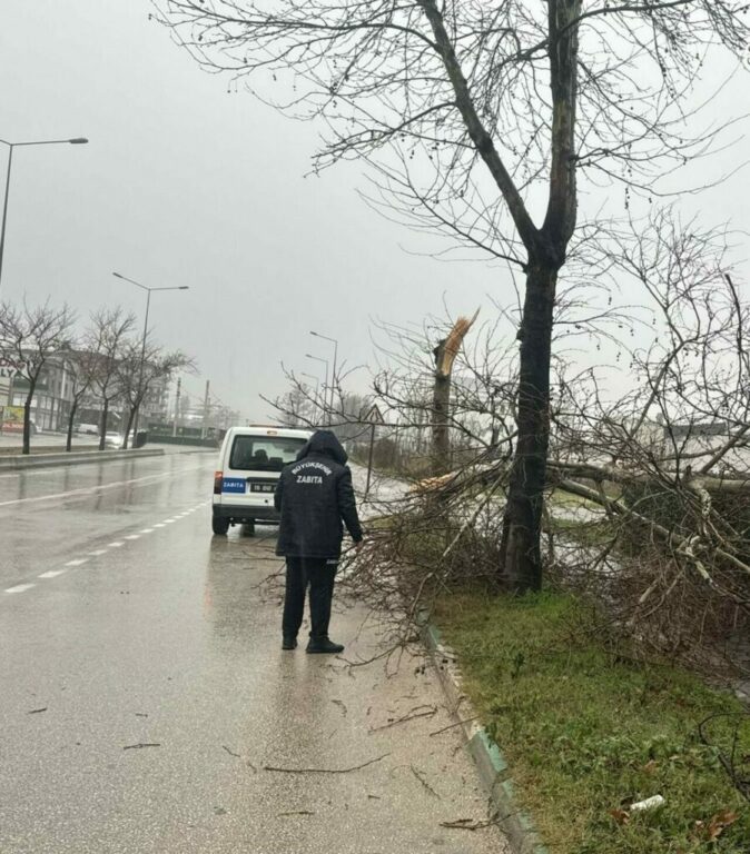 Bursa’da saatte 120 kilometre hıza ulaşan şiddetli rüzgâr, kent genelinde çeşitli olumsuzluklara neden oldu. Gece saatlerinden itibaren gelen ihbarlara hızlı şekilde müdahale eden Büyükşehir ekipleri, 356 personel ve 124 araçla toplam 100’ü aşkın ihbarı kısa sürede değerlendirdi. İhbarların büyük bölümünü ağaç devrilmeleri, çatı, tabela, panel ve saç levhaların yerinden kopması ile inşaat alanlarındaki riskli unsurlar oluşturdu.