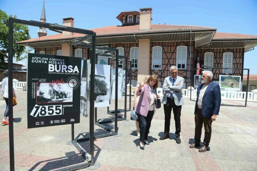 Bursa’nın UNESCO Dünya Miras Listesi’ne girişinin 11. yıl dönümü kapsamında Tayyare Kültür Merkezi ve UNESCO Meydanı’nda ‘Sürdürülebilir şehirlerin kültürel hafızası’, ‘Dünya mirası ve insan’ ve ‘Afetlere dirençli dünya mirası: Bursa’ temalı 3 farklı fotoğraf sergisi de ziyarete açıldı.
