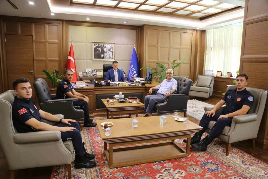 Bursa Büyükşehir Belediyesi Genel Sekreter Doç. Dr. Ergül Halisçelik de patili dostu hayata döndüren kahraman personelleri Cemal Sezer, Şükrü Kibar ve Furkan Gümüşoluk’u makamında ağırladı. İtfaiye Daire Başkanı Canalp Berkdemir ve İtfaiye Müdahale Şube Müdürü Muktedir Arslan’ın da yer aldığı ziyarette Genel Sekreter Halisçelik, Türkiye’ye örnek olan itfaiye teşkilatını tebrik etti. İtfaiyenin, belediyeciliğin ana hizmetlerinden birisi olduğunu söyleyen Genel Sekreter Halisçelik, her türlü afet ve acil durumlarda vatandaşın yanında olan itfaiye teşkilatının önemli görevler üstlendiğini belirtti. Genel Sekreter Halisçelik, Yenişehir ilçesindeki yangında da ekiplerin büyük özveriyle çalıştığını ifade etti. Yangının söndürülmesinin yanında can dostu bir köpeğin de ekipler tarafından hayata döndürüldüğünü anlatan Genel Sekreter Halisçelik, dikkatlerinden ve verdikleri mücadeleden dolayı belediye bürokratlarını ve itfaiye personelini tebrik etti.