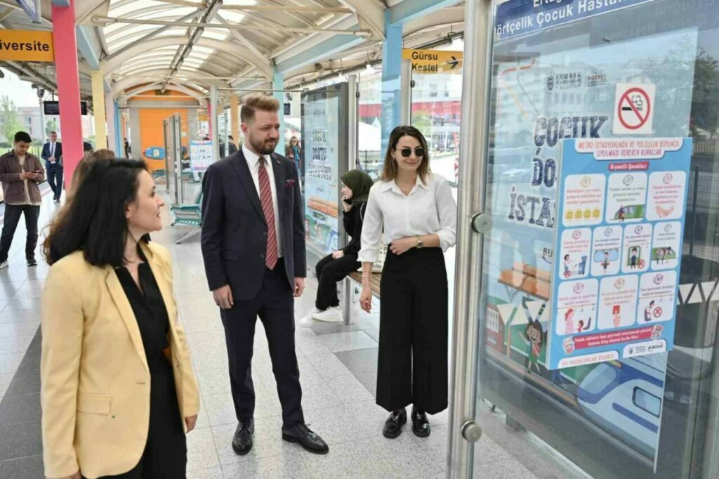 Bayraklarla ve balonlarla süslenen ‘Çocuk Dostu Metro İstasyonu’nun açılış törenine, Bursa Büyükşehir Belediyesi Başkanvekili Yalçın Işıkyıldız, Büyükşehir Belediyesi Genel Sekreter Yardımcısı Mehmet Yıldız, BURULAŞ Genel Müdürü Fahrettin Beşli, Büyükşehir Belediyesi yöneticileri, ilçe belediye yöneticileri, muhtarlar, çocuklar ve aileleri katıldı.