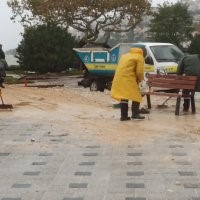 Bursa’da etkisini gösteren yağmur, lodos ve fırtına özellikle kıyı ilçelerinde hayatı olumsuz etkiledi. Sahil şeritlerinde dev dalgalar ve fırtına sebebiyle elektrik direkleri, ağaçlar ve panolar devrildi. Büyükşehir Belediyesi ekipleri sabah saatlerinden itibaren Gemlik ve Mudanya sahilinde temizleme çalışmalarına başladı. Gemlik ilçesine 80 personel, 5 kepçe, 5 kamyon, 4 tanker, 2 süpürge aracı ve 7 kamyonetle müdahalede bulunan ekipler, bir yandan fırtınanın yol açtığı enkazı kaldırırken, diğer taraftan da yıpranan kent mobilyaları ve parkların onarımına başladı.