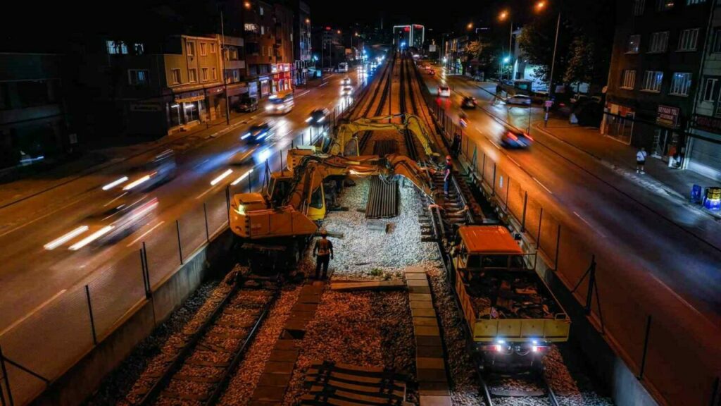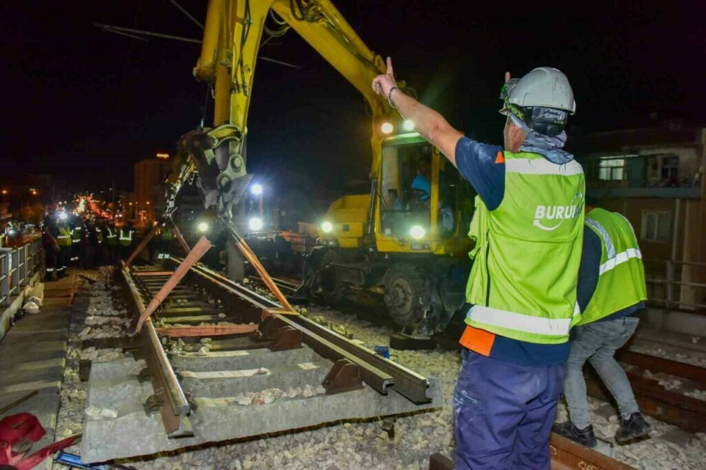 Bursa’da ulaşım sorununun ortadan kaldırılması için yeni yollar, köprü ve kavşaklarla karayolu ağını güçlendiren Büyükşehir Belediyesi, toplu ulaşımın bel kemiğini oluşturan raylı sistemleri daha cazip hale getirmek ve konforu artırmak için bakım ve yenileme işlemlerini de sürdürüyor. BURULAŞ ekipleri, 2008 yılında açılan ve 17 yıldır herhangi bir işlem yapılmayan Gökdere viyadüğünde genleşme contalarının değişimini ve çevre düzenleme çalışmalarını gerçekleştirdi. Gündüz saatlerinde sistemin aksamaması ve vatandaşların mağdur olmaması için saat 22.00’den sonra gerçekleştirilen işlemler, ekiplerin özverili çalışmalarıyla sorunsuz bir şekilde yürütüldü. Tren seferlerinin geçici olarak durdurulduğu anlarda ise, Merinos-Kestel hatları arasında ring otobüs seferleri düzenlendi. Otobüsler, tren saatlerine uyumlu şekilde hizmet verdi. BursaRay hatlarındaki yenileme ve bakım çalışmaları önümüzdeki günlerde de planlı bir şekilde devam edecek.