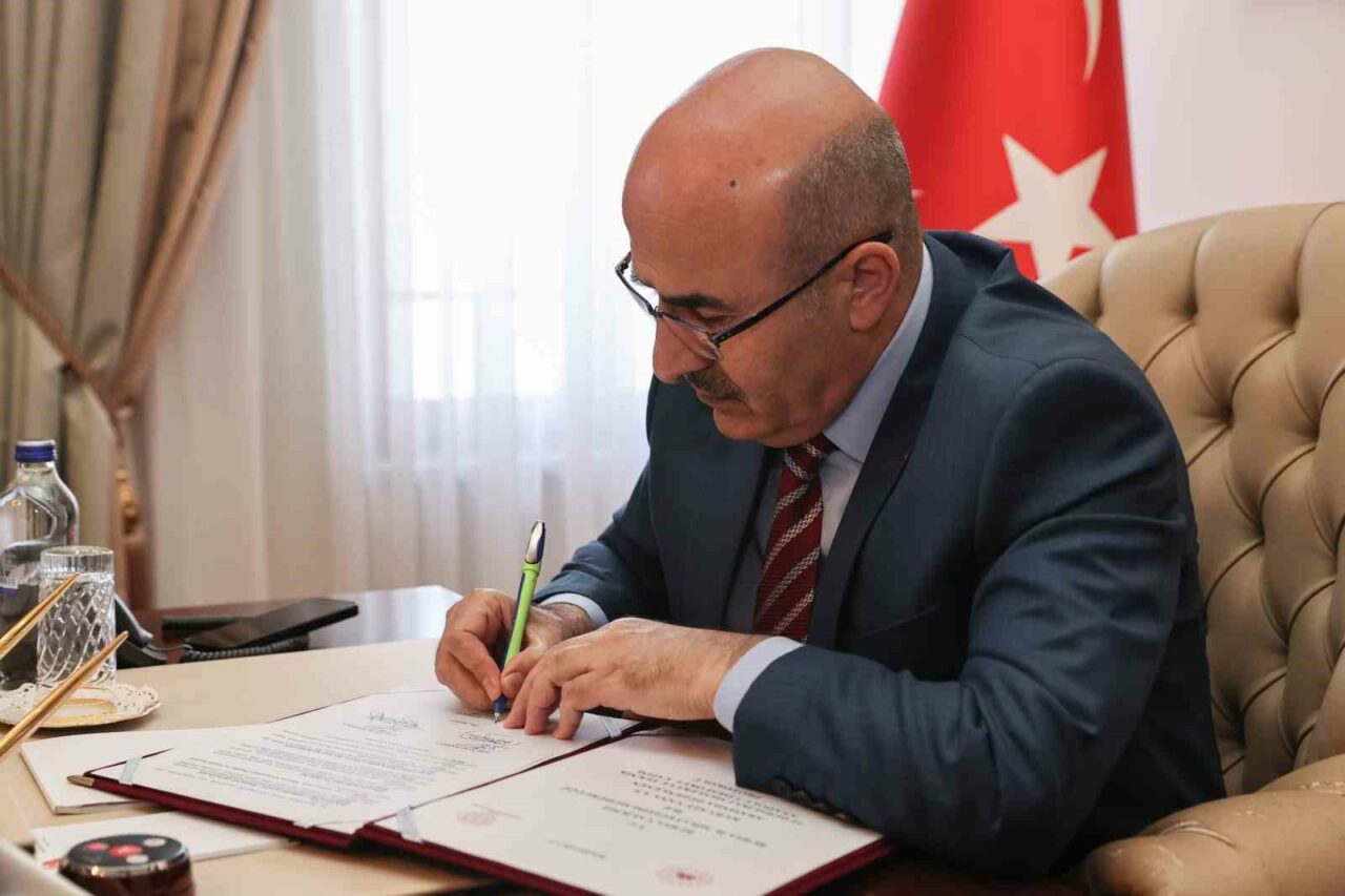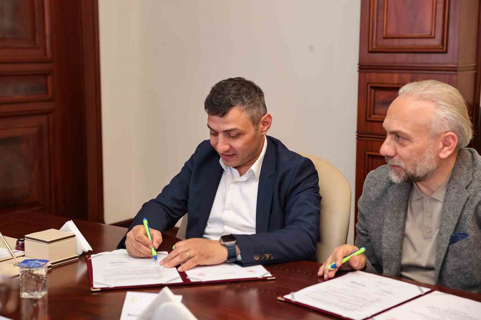 Bursa Valisi Mahmut Demirtaş ve hayırsever Samet Kurumahmut arasında Çalı Mahallesine kazandırılacak mesleki lise için imzalar atıldı.