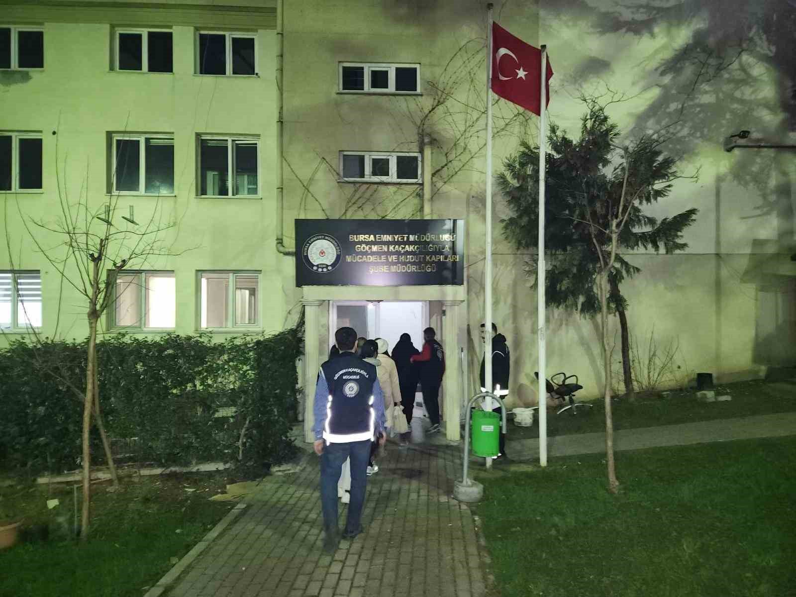 Bursa Emniyet Müdürlüğü, Göçmen Kaçakçılığıyla Mücadele ve Hudut Kapıları Şube Müdürlüğü ekipleri, ’göçmen kaçakçılığı’ suçunun deşifre edilmesi, suç failleri ve organizatörlerinin yakalanmasına yönelik operasyon düzenledi. Operasyonda, sağlıklı yaşam merkezi adı altında faaliyet gösteren ruhsatsız iş yerinde, ikamet ve çalışma izni bulunmayan Tayland uyruklu 8 kadın yakalanarak gözaltına alındı. Gözaltına alınan şahıslar ifadeleri alındıktan sonra İl Göç İdaresi Müdürlüğüne teslim edilirken, ruhsatı bulunmayan işletmeye SGK denetmeni tarafından 1.5 milyon TL idari para cezası uygulandı.