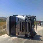 Çanakkale-Bursa karayolunda kamyona çarpan tır yan yattı. Kazada 1 kişi yaralandı.