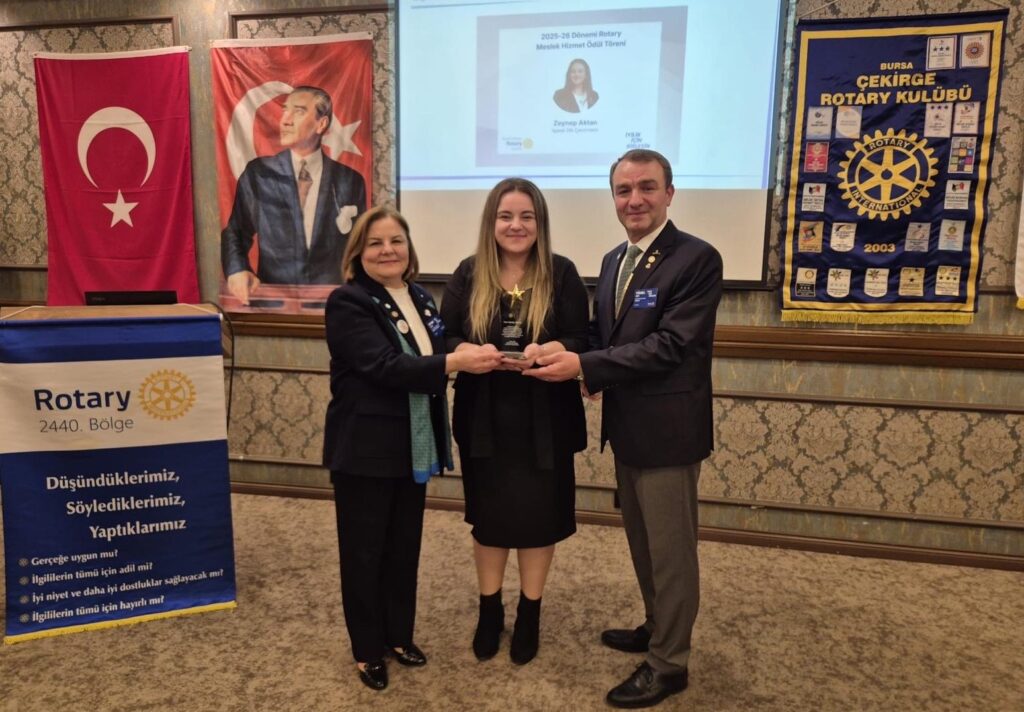 Çekirge Rotary Kulübü, sağır ebeveynlerin çocuğu olarak dünyaya gelen ve Türk İşaret Dili’ni anadili olarak edinen Zeynep Aktan’ı, “Rotary Meslek Hizmet Ödülü” ile onurlandırdı.