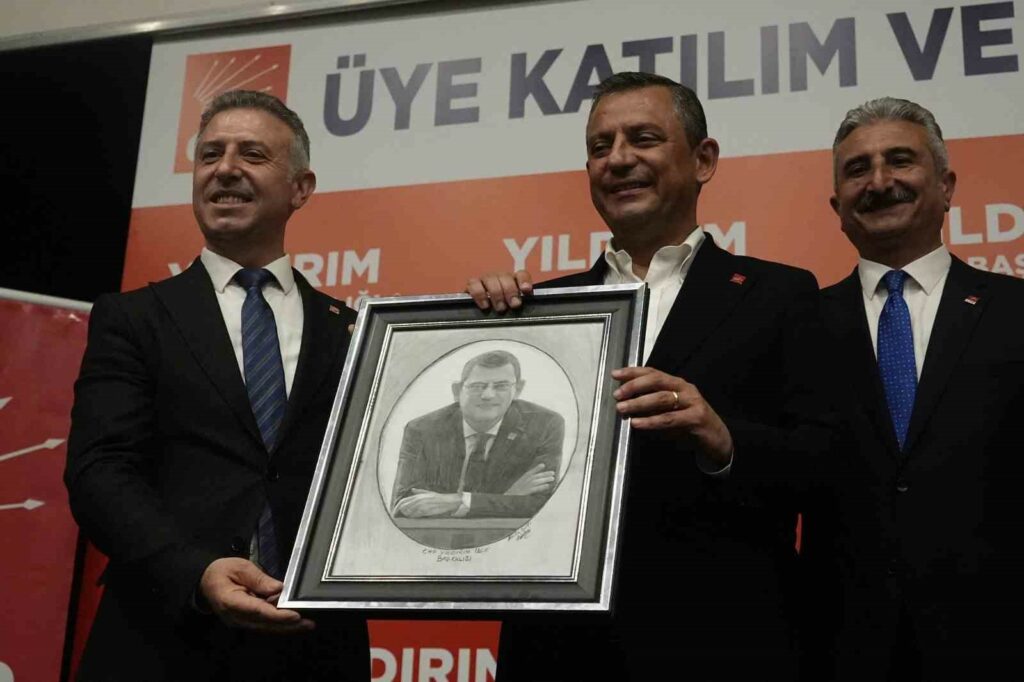 Bir dizi program için Bursa’ya gelen CHP Genel Başkanı Özgür Özel, CHP Yıldırım İlçe Başkanlığı’nda üye katılım törenine katıldı. Törende konuşan Özel, “Cumhuriyet Halk Partisi ailesi hızla büyüyor. Seçim akşamı kürsüden şunu söylemiştim, dedim ki ‘O yüzde 25 tavan artık kırıldı. Artık Cumhuriyet Halk Partisi’nin önündeki engeller kalktı. Bundan sonra hızla büyümeye, hızla güçlenmeye devam edeceğiz’ dedim. O gün de söyledim. Türkiye’nin dört bir yanında, 81 ilinde 973 ilçede söylüyorum. Cumhuriyet Halk Partisi herhangi bir parti değildir. Cumhuriyet Halk Partisi cumhuriyetten önce kurulmuş, kurtuluşu örgütleyenlerin Kuvayı Milliyecilerin, Anadolu ve Rumeli Hukuk cemiyetlerinin, canlarını ortaya koyarak vatanını savunanların ve canları pahasına bu ülkeyi kuranların kurduğu partidir. Gazi Mustafa Kemal Atatürk’ün kurduğu partidir. O yüzden gittiğim her yerde sadece Cumhuriyet Halk Partililerin değil, hangi siyasi görüşten olursa olsun bu parti herkesin babaevidir diyorum. Bugün AK Partililer için MHP’liler için tüm siyasi partiler için o gündür ve babaevinin kapıları ardına kadar açıktır. Şimdi o babaevine gelenler var. Bugün Yıldırım’da 600 kişi koştu babaevine geldi. Kimse daha niye önceden gelmedin demedi, niye gittin demedi” şeklinde konuştu.