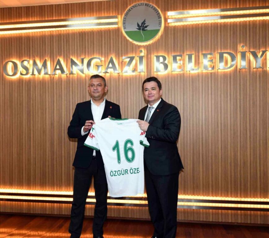 Başkan Aydın, günün anısına CHP Genel Başkanı Özel’e Bursa’yı ve Osmangazi’yi simgeleyen çeşitli hediyeler ile Özgür Özel isminin yazılı olduğu 16 numaralı Bursaspor forması hediye etti.