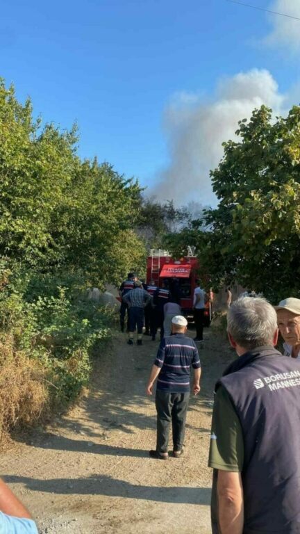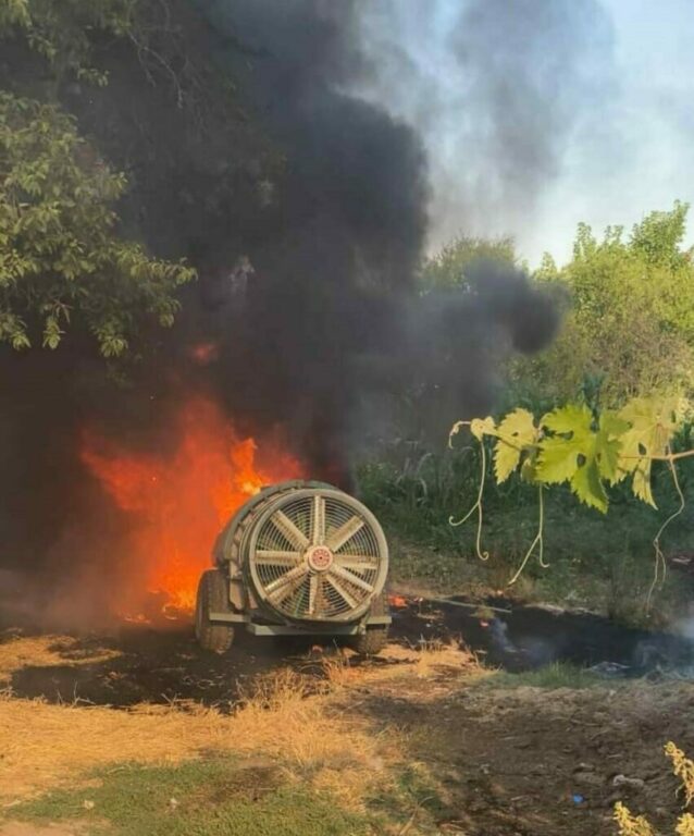 Bursa’nın İnegöl ilçesinde bahçedeki ilaçlama makinesi alev topuna döndü. Alevler samanlığa sıçramadan söndürüldü.