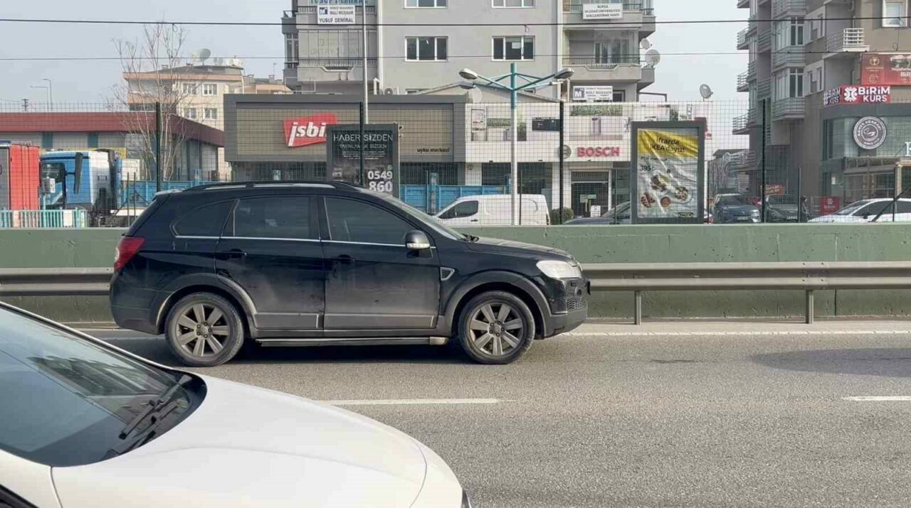 Bursa’nın Nilüfer ilçesinde İzmir Yolu Bursa istikametinde, Beşevler Metro İstasyonu yakınlarında yolun sol şeridine bırakılan cip herkesi şaşırttı. Uzun süre sol şeridi işgal eden cipe uzun süre müdahale eden olmadı.