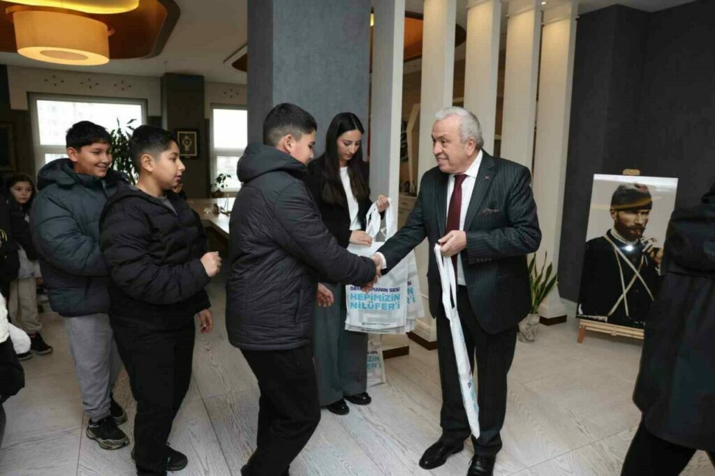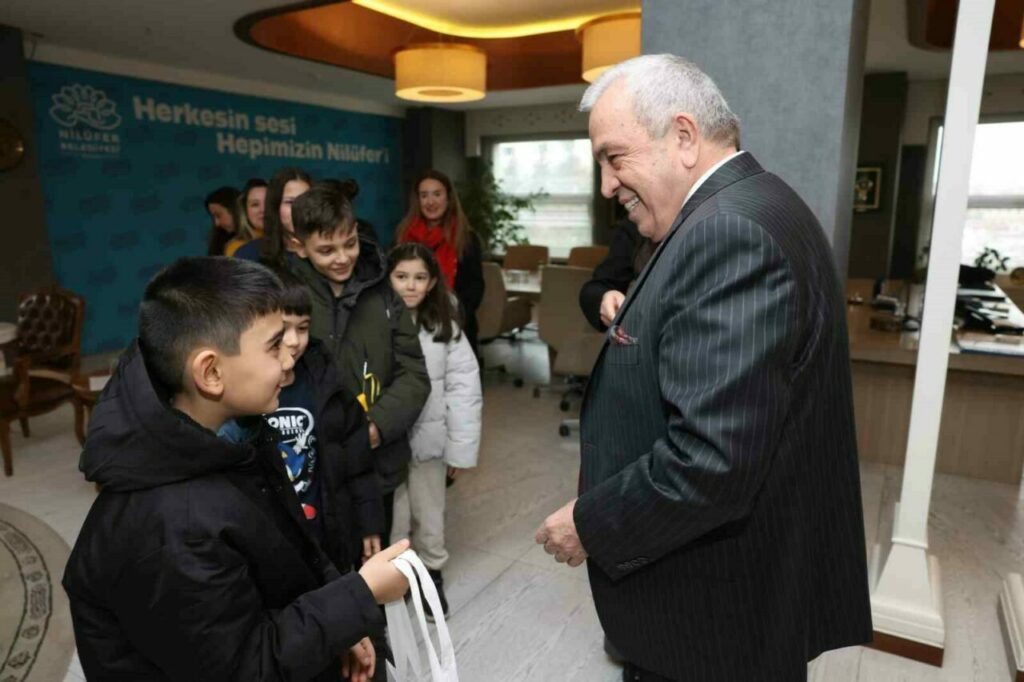 Çocuklar el emeklerini Başkan Şadi Özdemir’e hediye etti