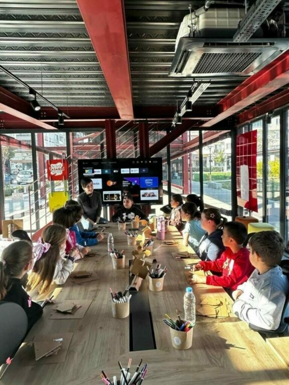 İkinci atölyeye katılan çocuklar ise Bursalı ressam Hale Asaf’ın yaşamını ve eserlerini keşfetti. “Hale Asaf’tan İlhamla Bursa Manzaraları” başlıklı atölyede çocuklar, sanatçının renk, biçim ve kübik yaklaşımını inceledikten sonra günümüz Bursa’sından ilham alarak kendi baskı çalışmalarını ortaya koydu. Renkli kağıtlar ve çeşitli baskı teknikleriyle üretilen kübik kompozisyonlarda çocuklar özgün bakış açılarını yansıttılar.