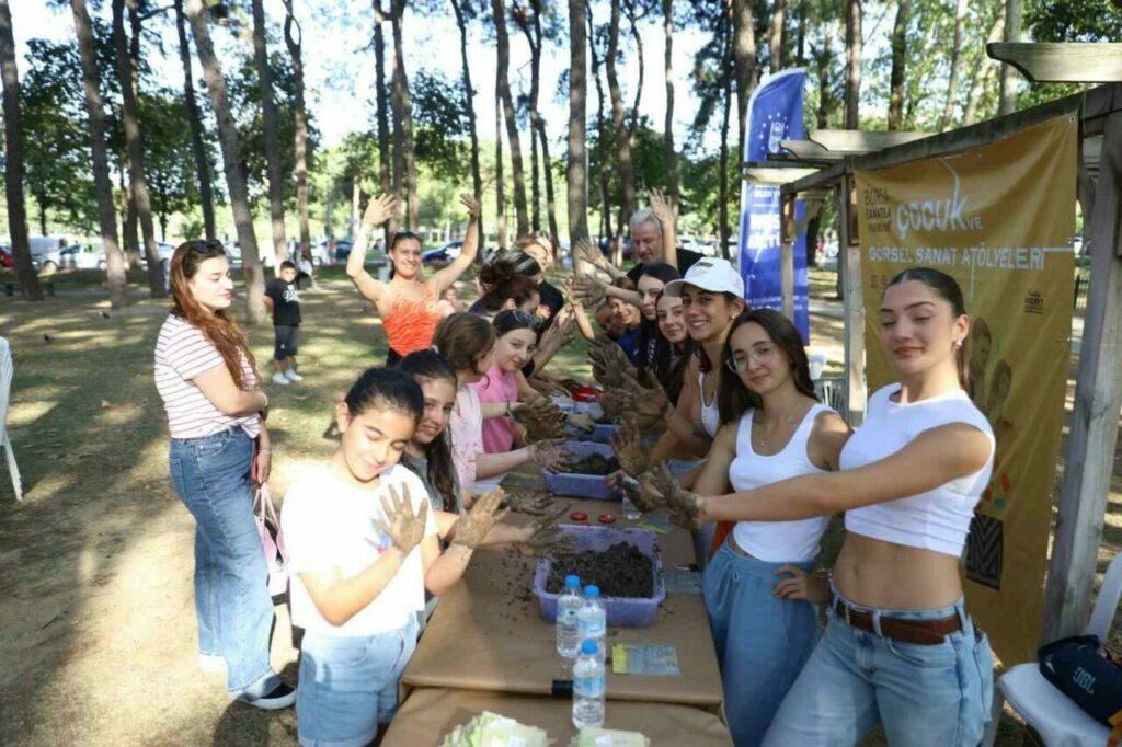 Bursa’da çocukların yaz tatilini hem eğlenerek hem de öğrenerek geçirmesi için projeler geliştiren Büyükşehir Belediyesi, ‘Bursa Sanatla Yeşeriyor’ etkinlikleri kapsamında Gezici Sanat Atölyesi’ni çocuklarla buluşturmaya devam ediyor. 17 ilçeyi gezerek birbirinden renkli etkinlikleri çocukların ayağına götüren Gezici Sanat Atölyesi’nin son durağı, Merinos Parkı oldu. Sanat ve doğanın birlikteliği üzerine yapılan sohbetle başlayan etkinlikte, çocuklar aromatik bitki tohumlarını toprakla yoğurarak şekil verdi. Eğlenceli bir gün geçiren katılımcılar, hem el becerilerini geliştirdi, hem de birlikte üretmenin mutluluğunu yaşadı. Sanatla doğayı birlikte yaşamanın büyük keyif verdiğini söyleyen çocuklar, Bursa Büyükşehir Belediye Başkanı Mustafa Bozbey’e teşekkür ettiler.