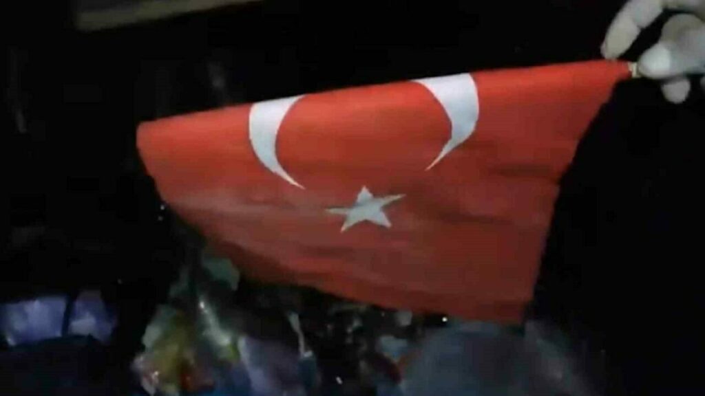 Bursa’da çöp konteynerlerini karıştırarak israfa dikkat çeken iki arkadaş, bu kez gördükleri manzarayla sarsıldı. Yusuf Emre Kürkçü ve Engin Altın, çöpten buldukları Türk bayrağını araçlarına asarak, “Bu bizim namusumuz” dedi.