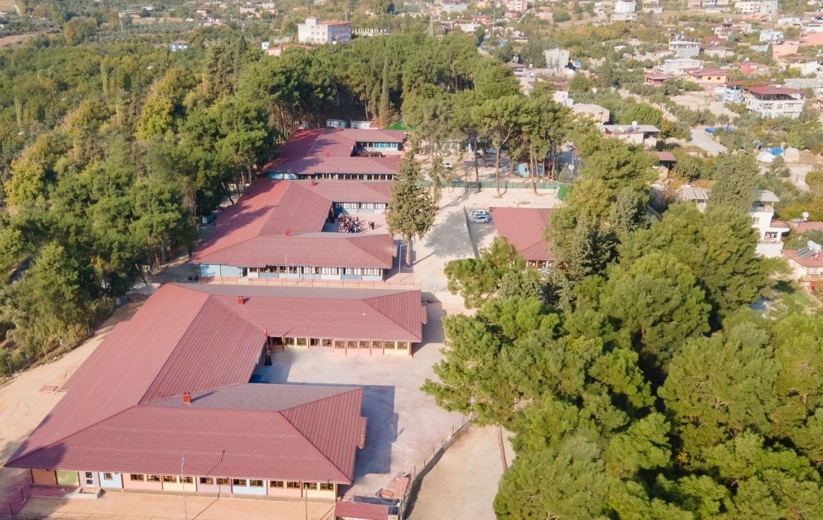 İnşaatı 4 ay gibi kısa bir sürede tamamlanan eğitim kompleksi Anadolu mimarisine uygun avlulu, tek katlı yapılardan oluşuyor. Çelik konstrüksiyon olarak inşa edilen uzun ömürlü,depreme dayanıklı binaların tasarımları Hatay’ın geleneksel mimarisinden izler taşıyor. Standart tip okul projelerinden farklı olarak eğitim kompleksindeki binalarda anti bakteriyel yer kaplaması, akustik tavan, kiremit görünümlü çatı kaplaması bulunuyor. Okul binalarının yerleşim planı da çevreye ve ağaçlara zarar vermeyecek şekilde titizlikle gerçekleştirildi. Orman Bölge Müdürlüğü’nün belirlediği, tehlike arz edebilecek hasta ya da yaşlı ağaçlar dışında hiçbir ağaca zarar verilmedi.