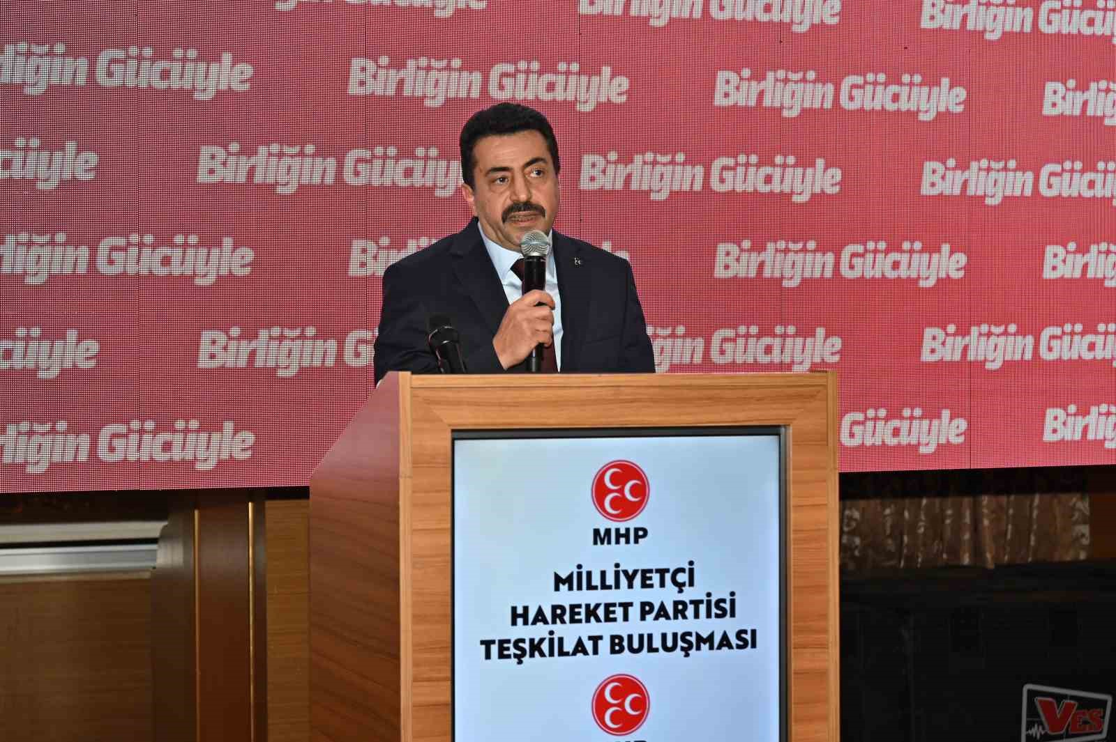 AK Parti İl Başkanı Davut Gürkan da 14 ve 28 Mayıs seçimlerinde Cumhur İttifakı olarak gösterilen gayretten dolayı tüm teşkilat mensuplarına teşekkür ederek konuşmasına başladı. Güzel bir birliktelik sergilediklerini ve bir ittifakın nasıl olduğunu herkese gösterdiklerini dile getiren Gürkan, “Önümüzdeki süreci iyi değerlendirmemiz gerekir. Saha bizden çalışmayı bekliyor. İl başkanımla beraber sürekli istişare ediyoruz. Sahada nasıl bir çalışma yapmamız gerekiyor onu planlamaya çalışıyoruz. Bu süreç önemli. Bir ittifak süreci içinde mutlak surette aramıza nifak tohumu ekmeye çalışanlar olacaktır. Buna asla müsaade etmeyiz. Bizimki gönülden bir birliktelik. Bize düşen ‘o dedi bu dedi’ye bakmak değil büyüklerimiz ne diyorsa ona göre hareket etmek. İnşallah sahanın moral ve motivasyonunu artıracak, sandıkları da asla boş bırakmayacak, bütün okullarda sorumlu görevlilerimizle beraber çalışacağız. Biz şimdiden başladık. Çağrı merkezimizi kurduk,SKM’yifaaliyete geçirdik. Ortak çalışmalarımız çok kıymetli. Cumhurbaşkanımıza ve değerli büyüğümüz Devlet Bahçeli’ye mahcup olmamak için elimizden gelen gayreti göstereceğiz” diye konuştu.