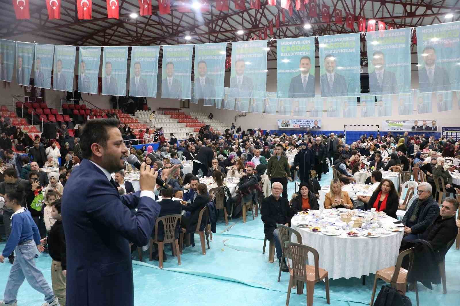Mudanya’da 2 bin kişinin katıldığı iftar programında vatandaşların yoğun ilgisiyle karşılaşan Cumhur İttifakı AK Parti Mudanya Belediye Başkan Adayı Gökhan Dinçer, ardından yüzlerce kişinin yer aldığı organizasyonda vatandaşlara çiğköfte ikram etti.