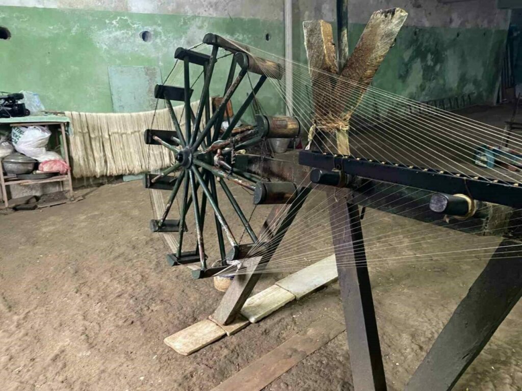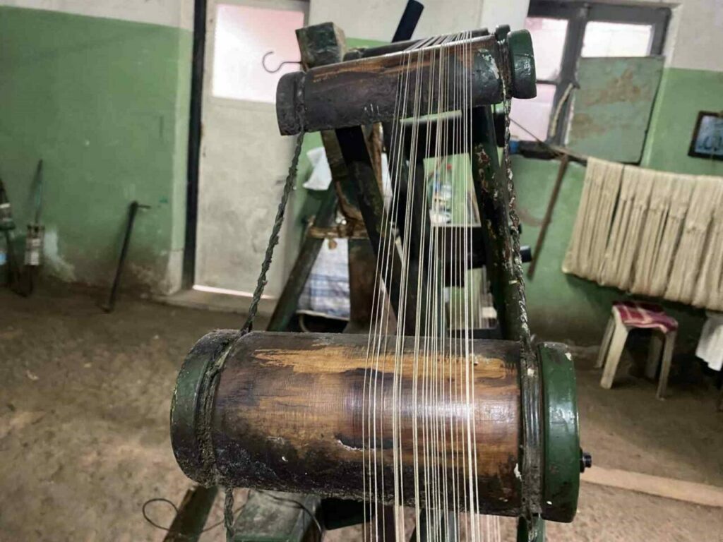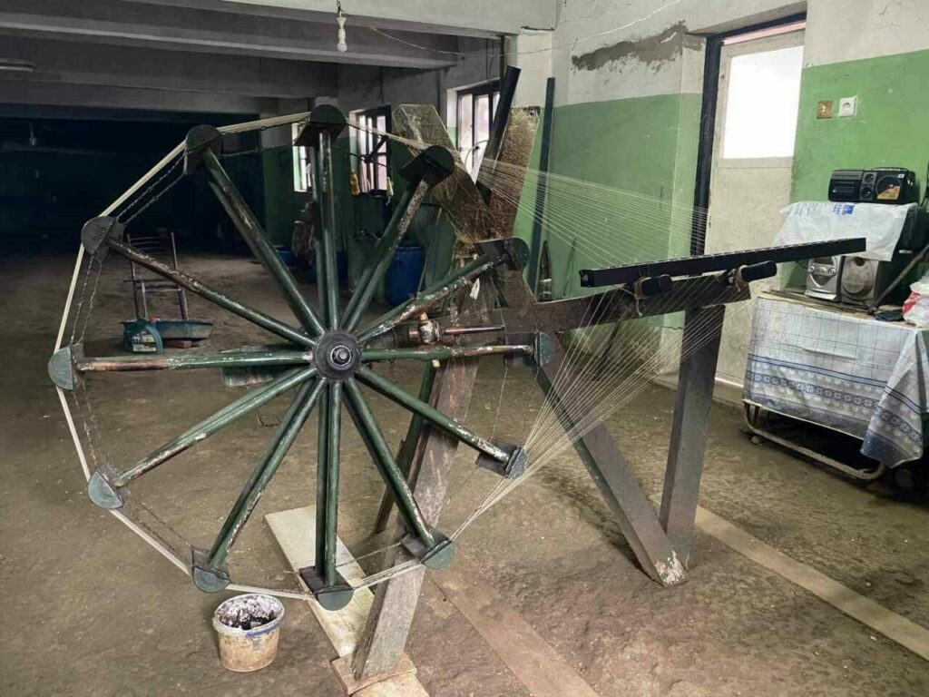 Bugün hâlâ aynı tezgâhın başında olan Şengünalp, üretim sırasında tezgâh üzerinde bulunan 24 kancaya bağlanan ipliklerle saatlerce koşarak çalışıyor. Yaklaşık 700 gram iplik elde edebilmek için günde en az 6 saat boyunca durmaksızın hareket ediyor.