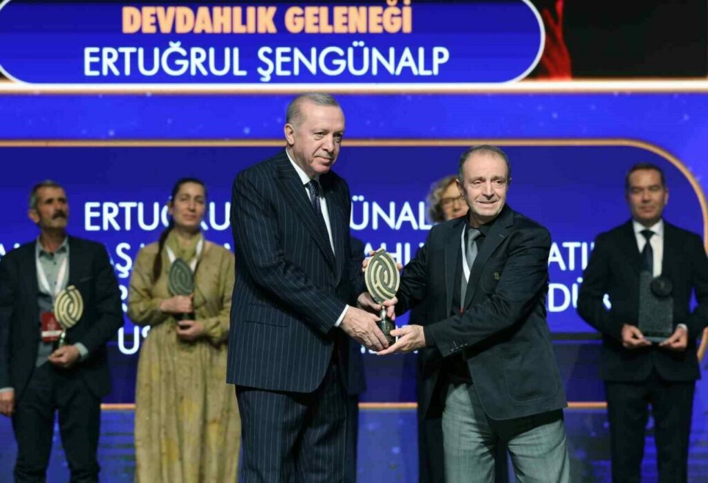 Ertuğrul Şengünalp, Kültür ve Turizm Bakanlığı sanatçısı olarak 12 yıldır çeşitli festival ve fuarlarda Bursa’yı temsil ediyor. “Yaşayan İnsan Hazineleri” ödülüne aday gösterilen Şengünalp, Ankara’da düzenlenen törende ödülünü Cumhurbaşkanı Recep Tayyip Erdoğan’ın elinden aldı.