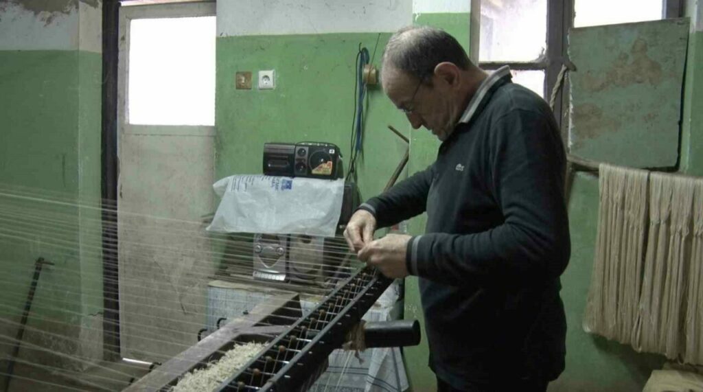 Osmangazi ilçesi Muradiye Mahallesi’nde, Osmanlı’dan günümüze uzanan devdâhlık sanatı, 60 yaşındaki usta Ertuğrul Şengünalp’in adımlarıyla yaşamaya devam ediyor. Çocuk yaşta başladığı bu meşakkatli el sanatını 53 yıldır aralıksız sürdüren Şengünalp, her gün kilometrelerce koşarak ipek iplik üretiyor.