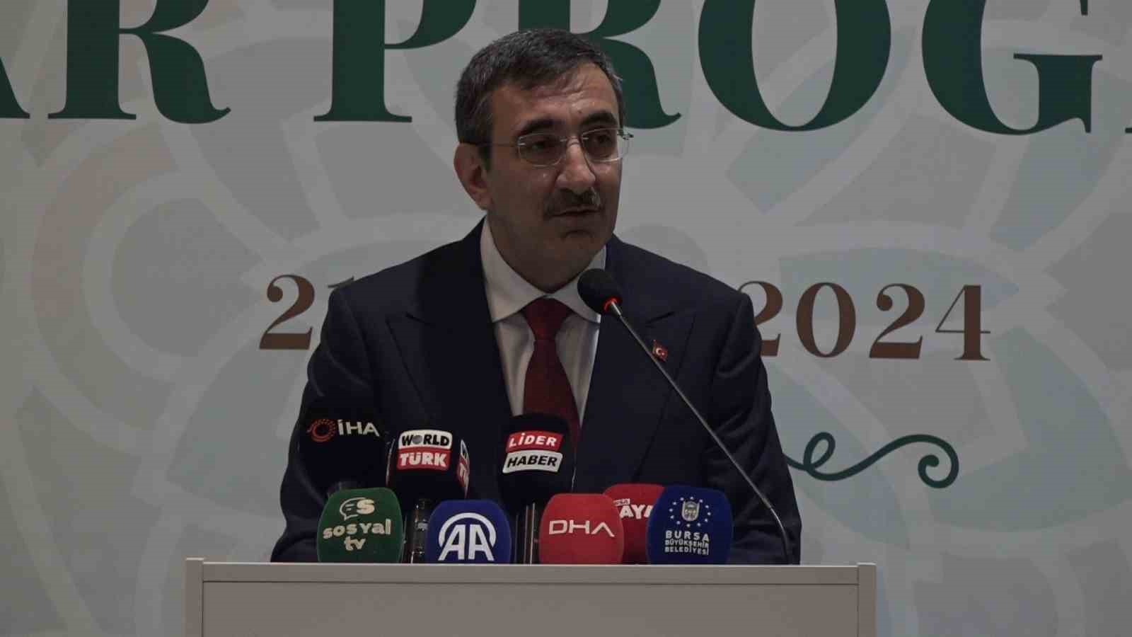 Cumhurbaşkanı Yardımcısı Cevdet Yılmaz, Bursa programında STK temsilcileri ve kanaat önderleriyle iftarda bir araya geldi. Yılmaz, “Milletin önceliği neyse bizim önceliğimiz o. Milletin derdi neyse bizim derdimiz o. Böyle başladık böyle de devam ediyoruz. Dolayısıyla Ankara’da masa başında oturup, memleketi yöneten bir ekip hiçbir zaman olmadık” dedi.