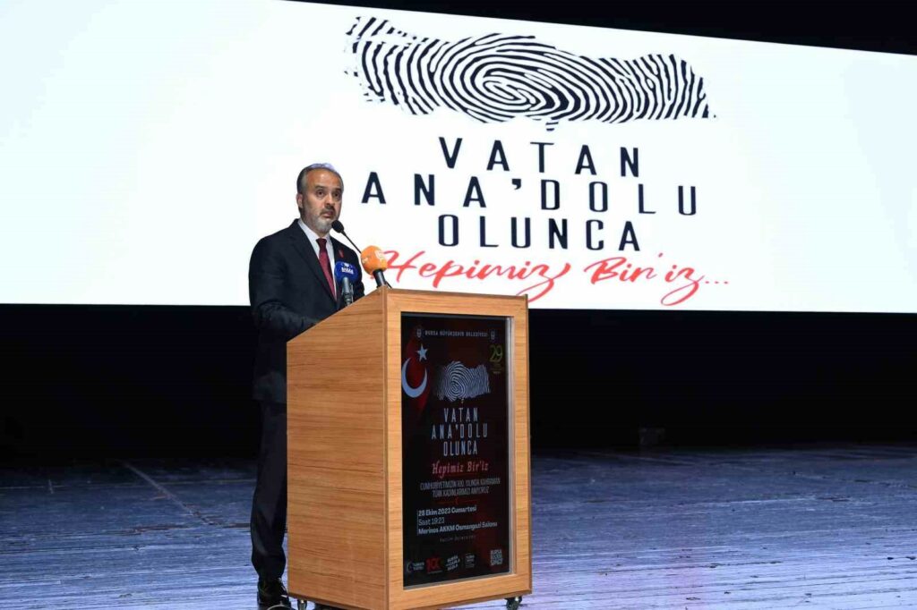 Etkinlikte konuşan Bursa Büyükşehir Belediye Başkanı Alinur Aktaş, sözlerine Filistin’de yaşanan insanlık dramını anlatarak başladı ve “Bu zulmü, bu vahşeti bir kez daha lanetliyor ve Müslüman kardeşlerimiz üzerindeki kara bulutların bir an önce dağılmasını diliyorum” dedi.