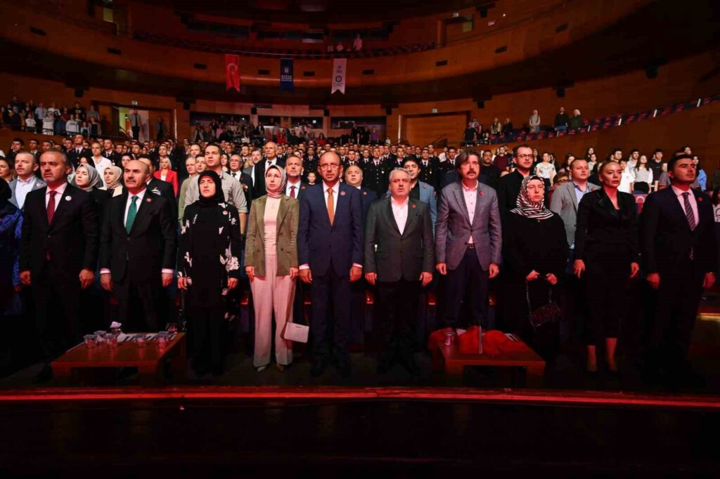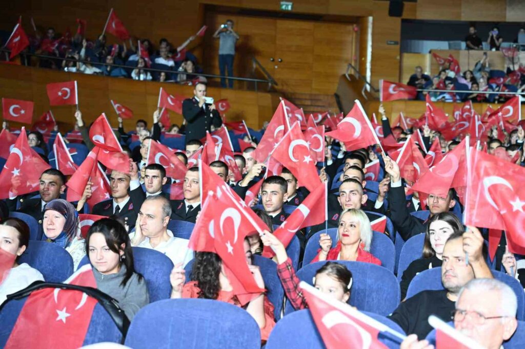 Etkinliğin sonunda salonda Türk bayrakları dalgalanırken, Yüzüncü Yıl Marşı hep bir ağızdan söylendi.