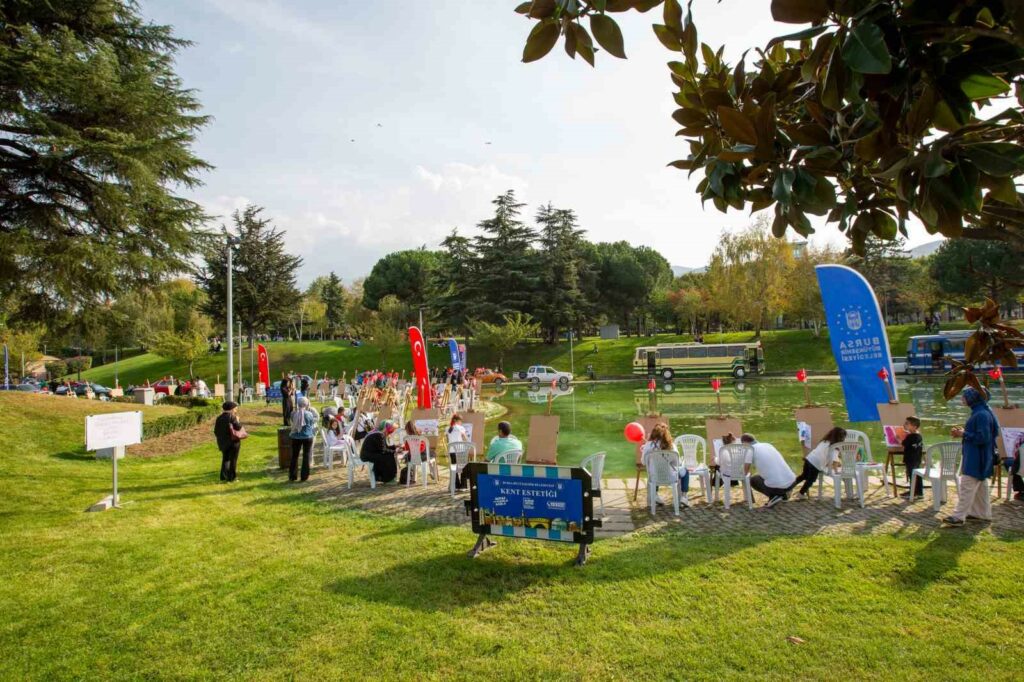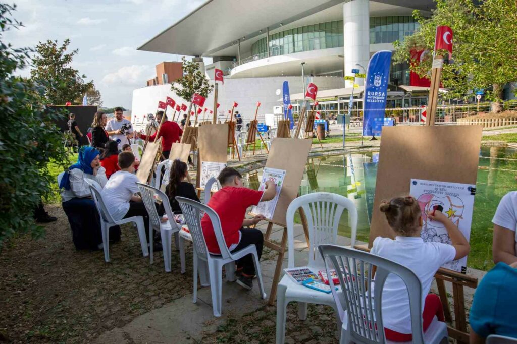 Bursa Büyükşehir Belediyesi’nin Cumhuriyet’in 100’üncü yılı etkinlikleri çerçevesinde düzenlendiği açık hava resim yapma etkinliğine katılan yüzlerce çocuk, tuval başında hünerlerini gösterdi.