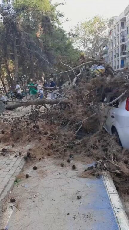 Bursa’da çürüyen ağaç otomobilin üzerine devrildi