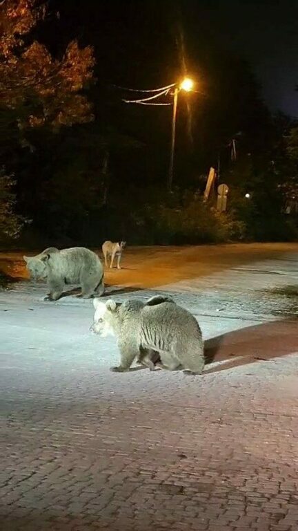 Bursa’nın Gemlik ilçesinden gelen doğasever grup, Uludağ’ın eteklerinde yaptıkları yürüyüş sonrası Sarıalan bölgesinde yaban hayatın etkileyici bir yüzüyle karşılaştı. Sokakta aniden karşılarına çıkan anne ayı ve iki yavruyu gören dağcılar, paniğe kapılmadan durumu soğukkanlılıkla yönetti. Tedirgin etmemek adına ayılara yaklaşmayan grup üyeleri, yanlarında getirdikleri yiyecekleri uzaktan bırakarak hayvanların dikkatini dağıttı. Bu sırada çevre köylerden gelen çoban köpekleri ayılara havlasa da, ayılar hiç oralı olmadan yemeklerini yemeye devam etti.