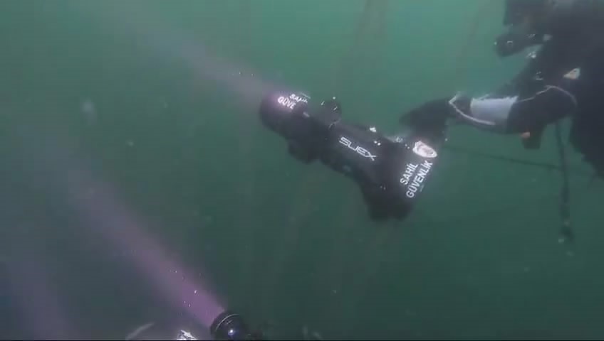 Sahil Güvenlik Komutanlığı’na bağlı dalgıçlar midye çiftliğine dalış gerçekleştirdi. Üst kısmından dubalarla bağlı olan ve 20 metre derinliğe kadar inen halatlarla dolu midye çiftliği, herhangi bir cansız bedenin takılma ihtimaline karşı dalgıçlarla kontrol ediliyor.