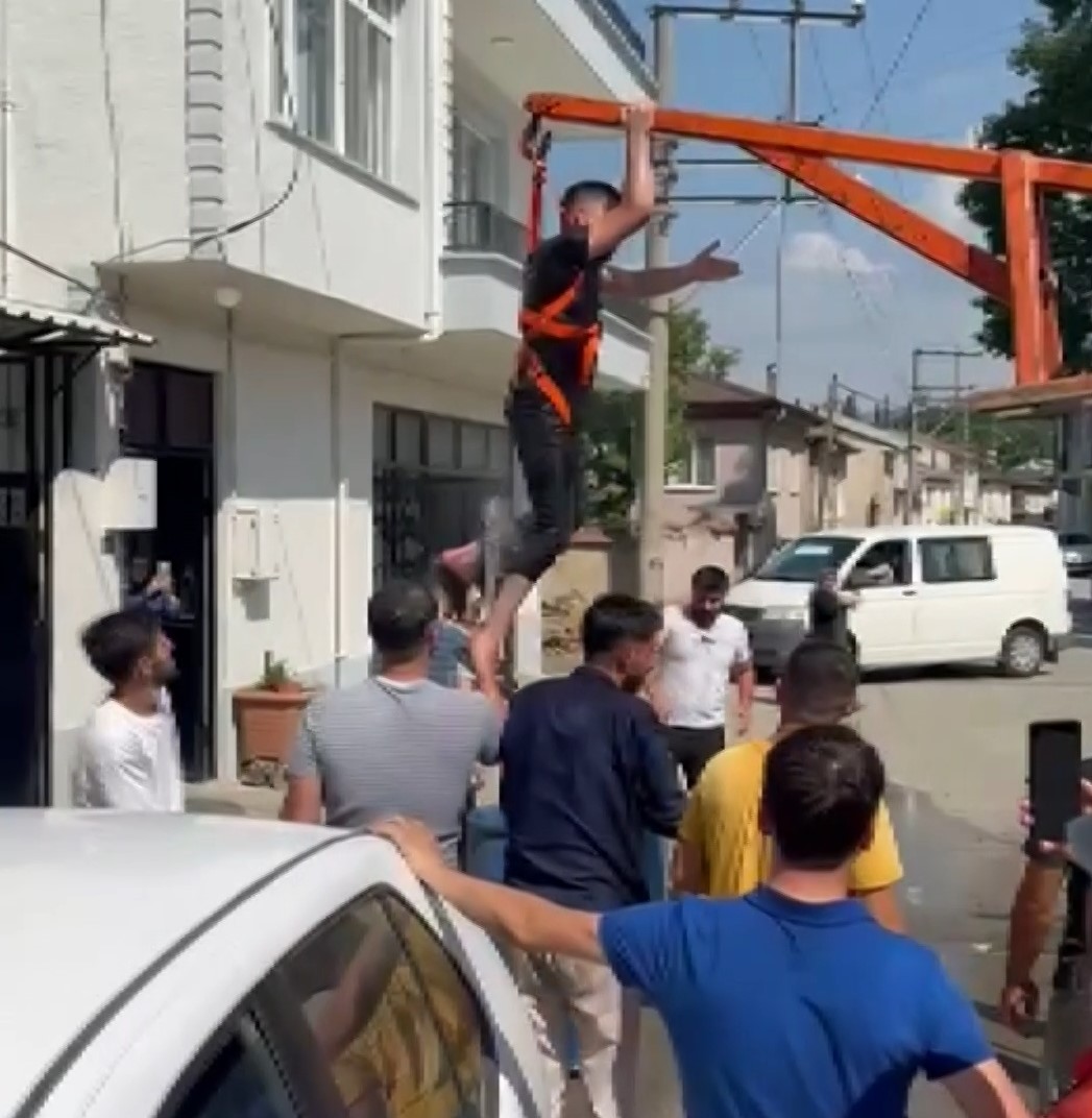 Damadı forklifte astılar, bahçe hortumuyla yıkadılar