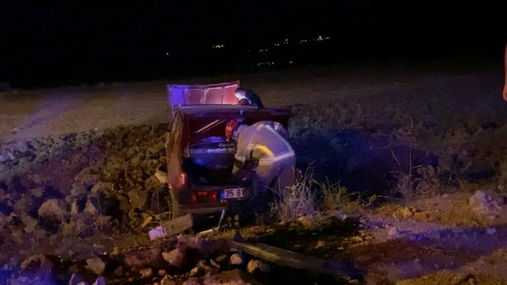 Olay, saat 01.00 sıralarında Yeni mahalle Akpınar Caddesi’nde meydana geldi. Baba Adnan Y.(63) oğlunun aracıyla evli olan kızının evinin önüne gitti. Baba, iddiaya göre daha tartışma yaşadığı sırada damadı Okan B.(36)’ya ait 35 BTV 420 plakalı otomobili, üzerinde bırakılan anahtarıyla çalıştırıp hızla kaçtı. O sırada damadı da aracın arkasından koşmaya başladı. Yaklaşık 200 metre ileride Adnan Y. Yönetimindeki otomobil, yoldan çıkarak tarlaya uçtu. Sürücü hafif şekilde yaralandı. Yaralı kaza yerine sevk edilen Ambulansla İnegöl Devlet Hastanesi’ne kaldırıldı. Yaralı baba ve damadı ifadeleri alınmak üzere karakola götürüldü.