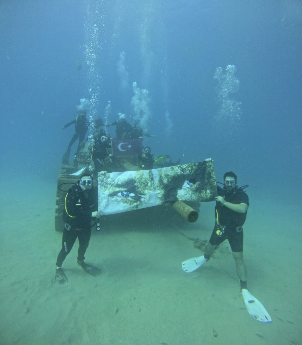 Türkiye Cumhuriyeti’nin kurucusu Mustafa Kemal Atatürk’ün ölümünün 86. yıl dönümünde denizin altında Türk bayrağı ve Atatürk posteri açtılar.