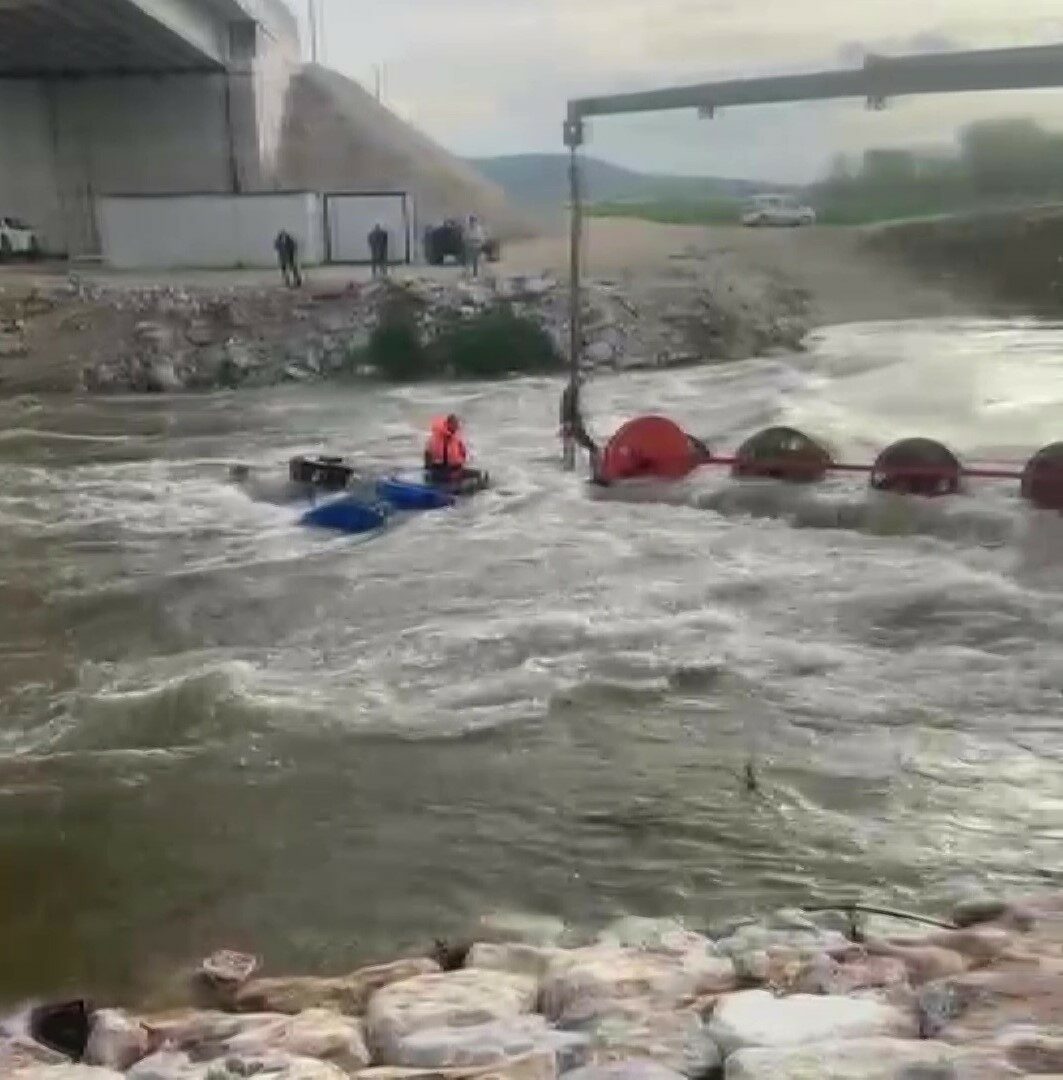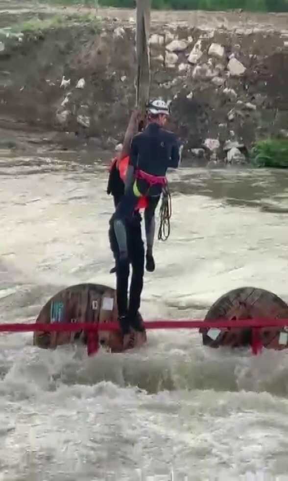 Dereyi traktörle geçmek isterken faciadan dönüldü: 10 işçi vinçle kurtarıldı