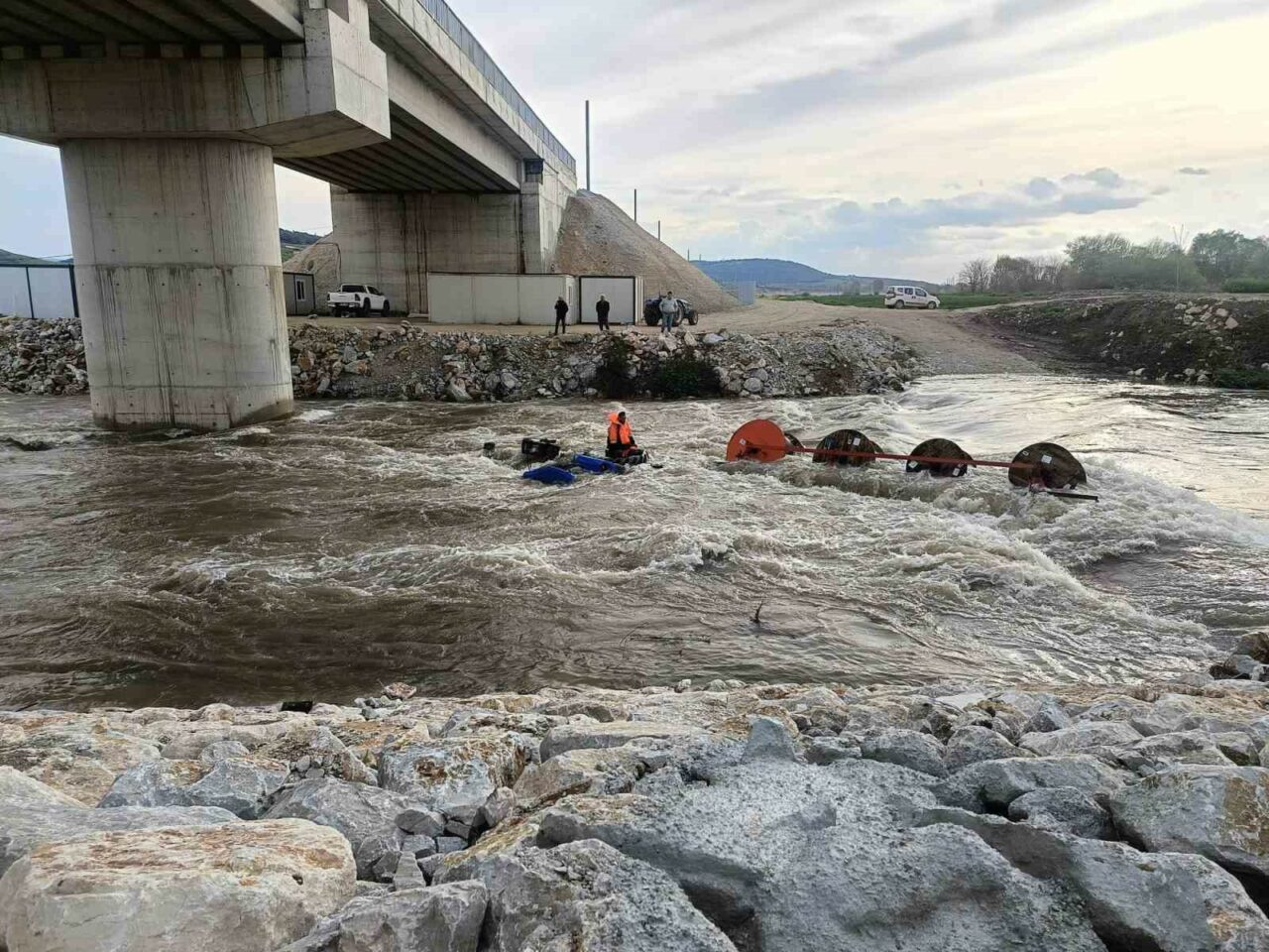 Olayın ardından bölgeye Bursa Büyükşehir Belediyesi İtfaiye Daire Başkanlığı ekipleri, jandarma, AFAD ve Yenişehir arama kurtarma ekipleri sevk edildi. Ekipler, suyun debisi ve zemin şartlarının zorluğu nedeniyle kurtarma çalışmalarını kontrollü şekilde yürüttü. Bölge sakinlerinin de destek verdiği çalışmalarda, mahsur kalan işçilere halatlar ulaştırıldı.