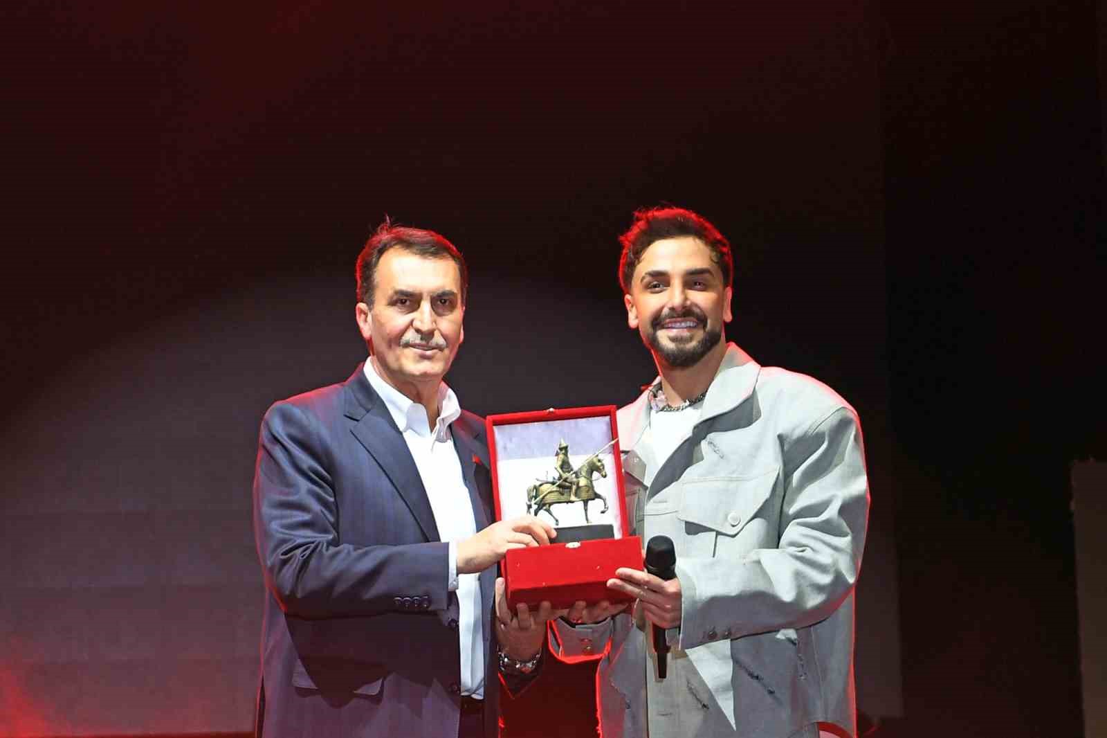Başkan Dündar, günün anısına şarkıcı Sefo’ya Osman Gazi biblosu hediye etti.