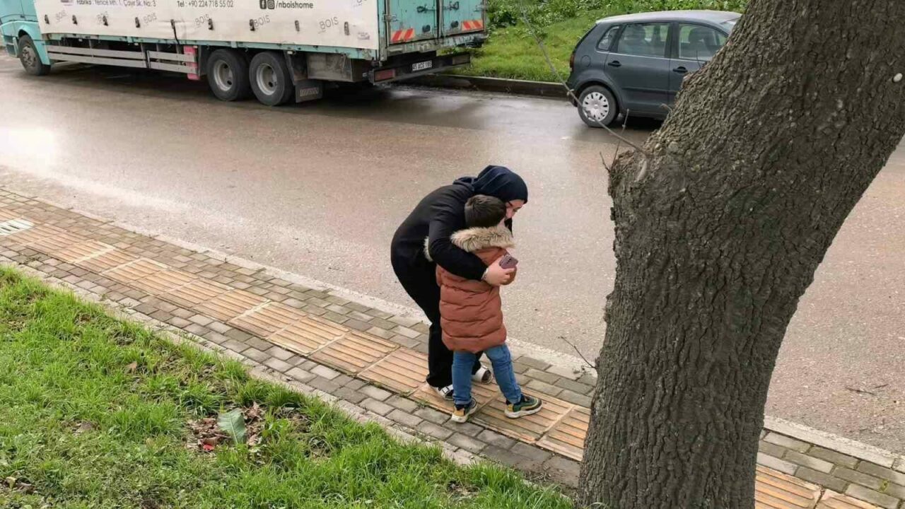 Bursa’nın İnegöl ilçesinde meydana gelen kazada devrilen triportörde annesi yaralanan çocuk, gözyaşlarını tutumadı.